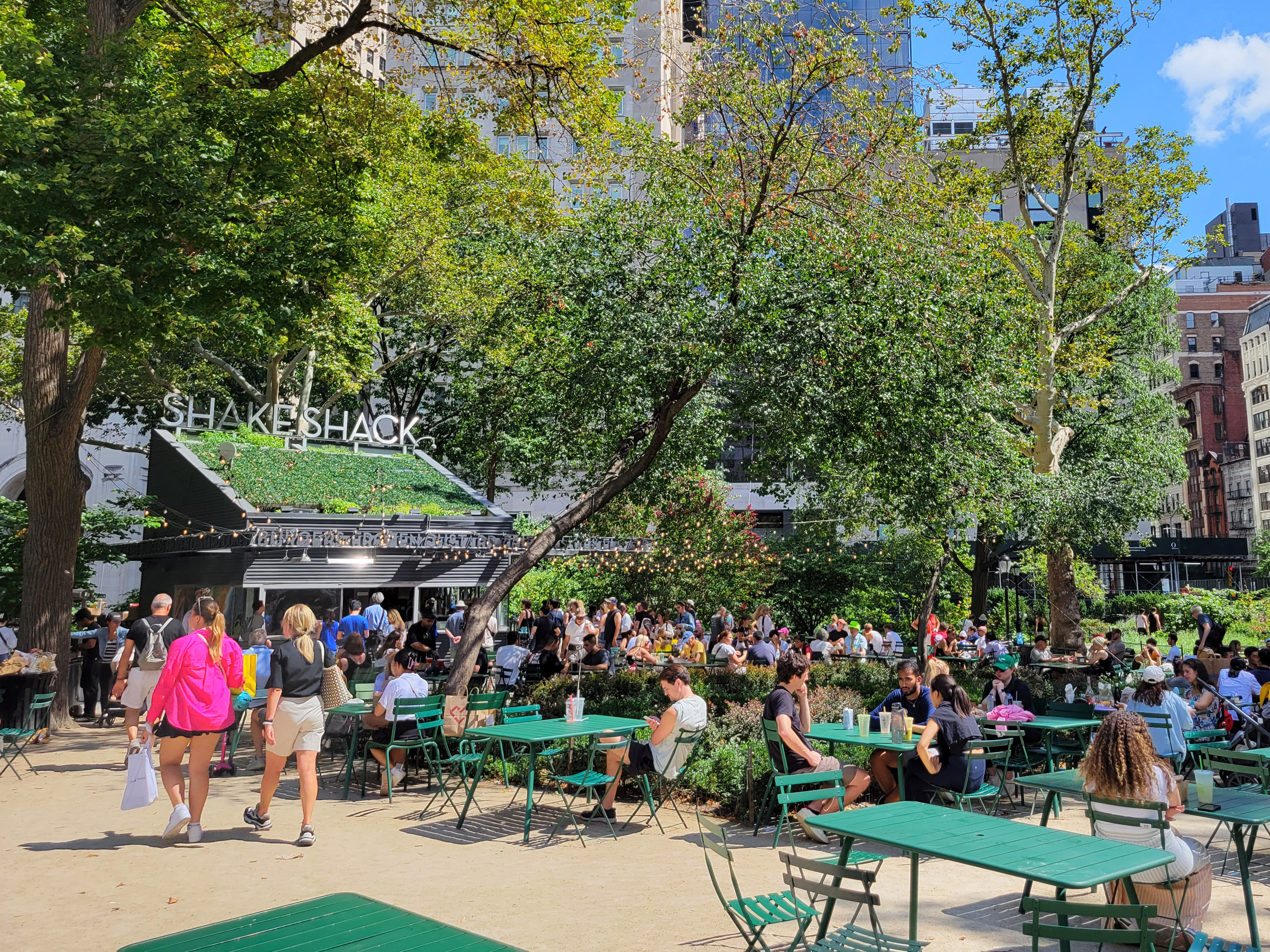 맨하탄에 이런 공원이 있는 것은 모르셔도, 아마 쉑쉑(Shake Shack, 쉐이크섁) 버거는 모두 아실텐데, 바로 여기서 2001년에 핫도그 노점상으로 시작해서 2004년에 사진의 원조 가게가 만들어졌고, 그 후 이야기는 모두가 다 아시므로 이하생략...^^
