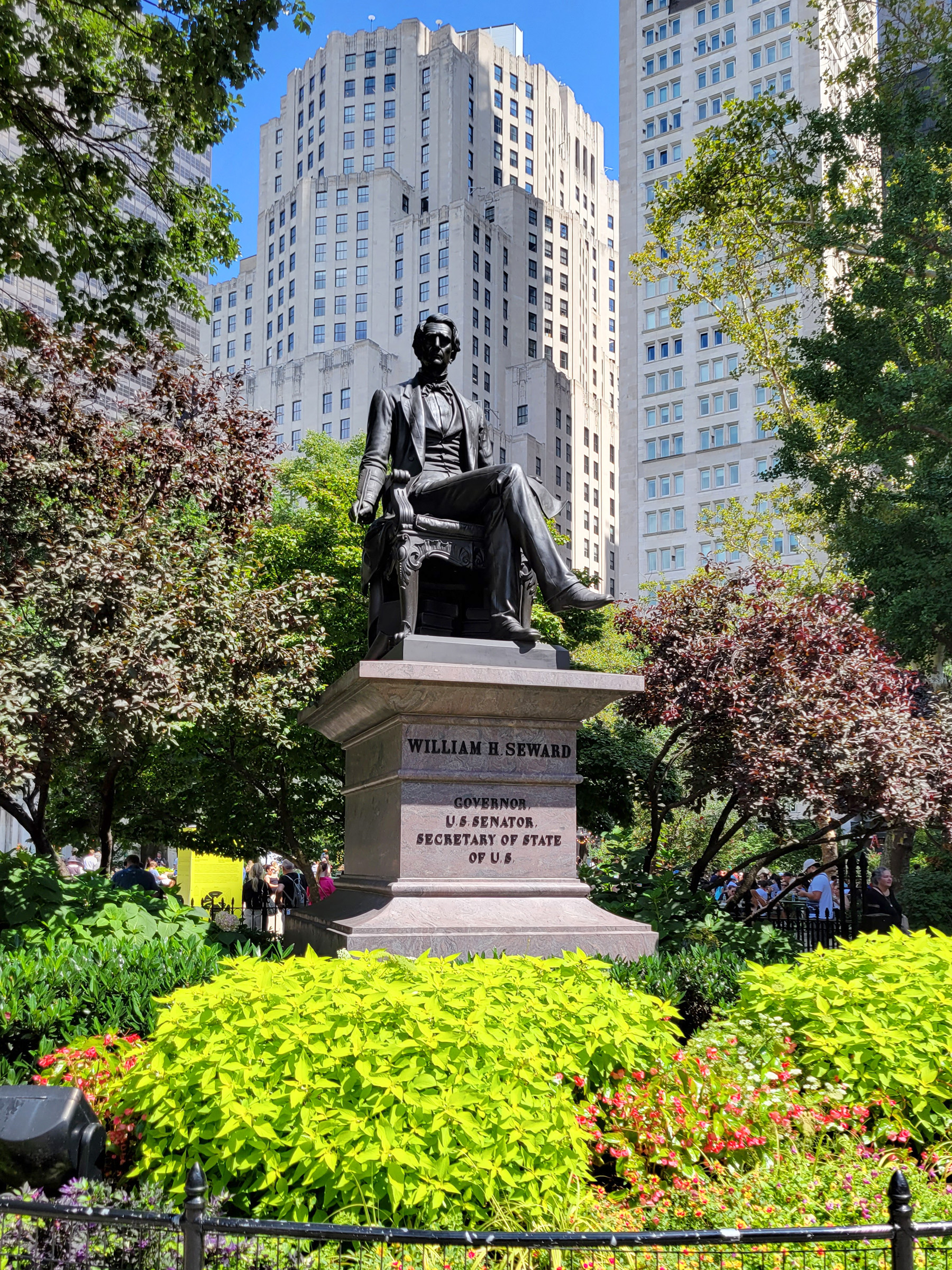 공원의 남쪽 입구를 지키는 동상은 윌리엄 수워드(William H. Seward)로, 그는 30대에 뉴욕 주지사에 당선되고 연방 상원의원을 거쳐 공화당 대통령 후보 자리를 놓고 링컨과 경쟁했던 인물이다. 비록 역전패를 한 후에도 링컨을 위해 열심히 유세를 해서, 링컨이 취임하면서 그를 국무장관으로 뽑았으며, 남북전쟁이 끝나고 링컨 암살된 후에도 장관직을 유지하며 러시아로부터 알래스카를 매입하는데 주도적이었던 것으로 가장 유명하다.