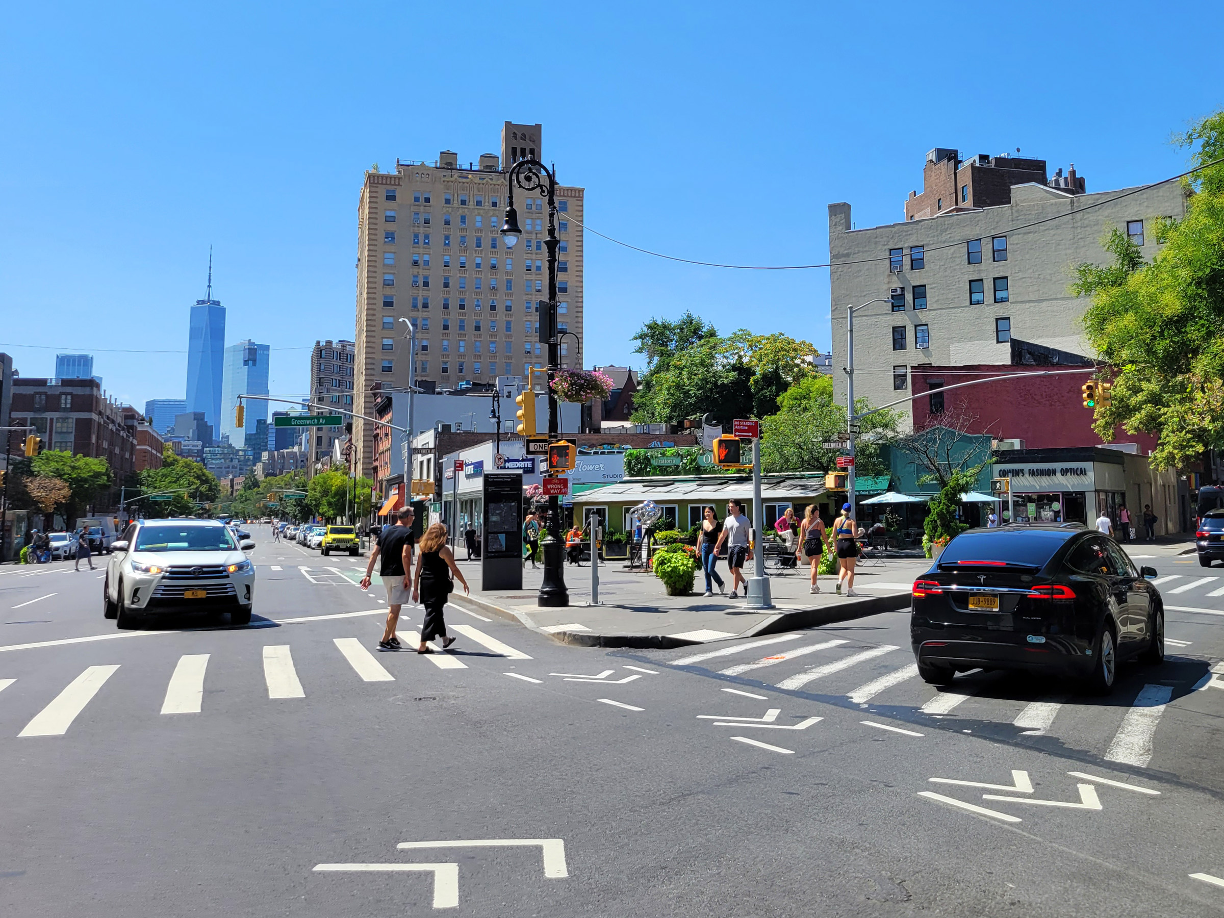 맨하탄에서도 잘 나가는 바와 음식점이 모여있는 동네로 유명한 그리니치 빌리지(Greenwich Village)에서 우리가 찾아온 식당이 모퉁이에 나지막히 자리잡고 있고, 멀리 남쪽으로는 전 달에 '빨간 내복' 대신에 꼭대기에서 밥을 얻어 먹었던 세계무역센터 원월드 빌딩이 보인다.
