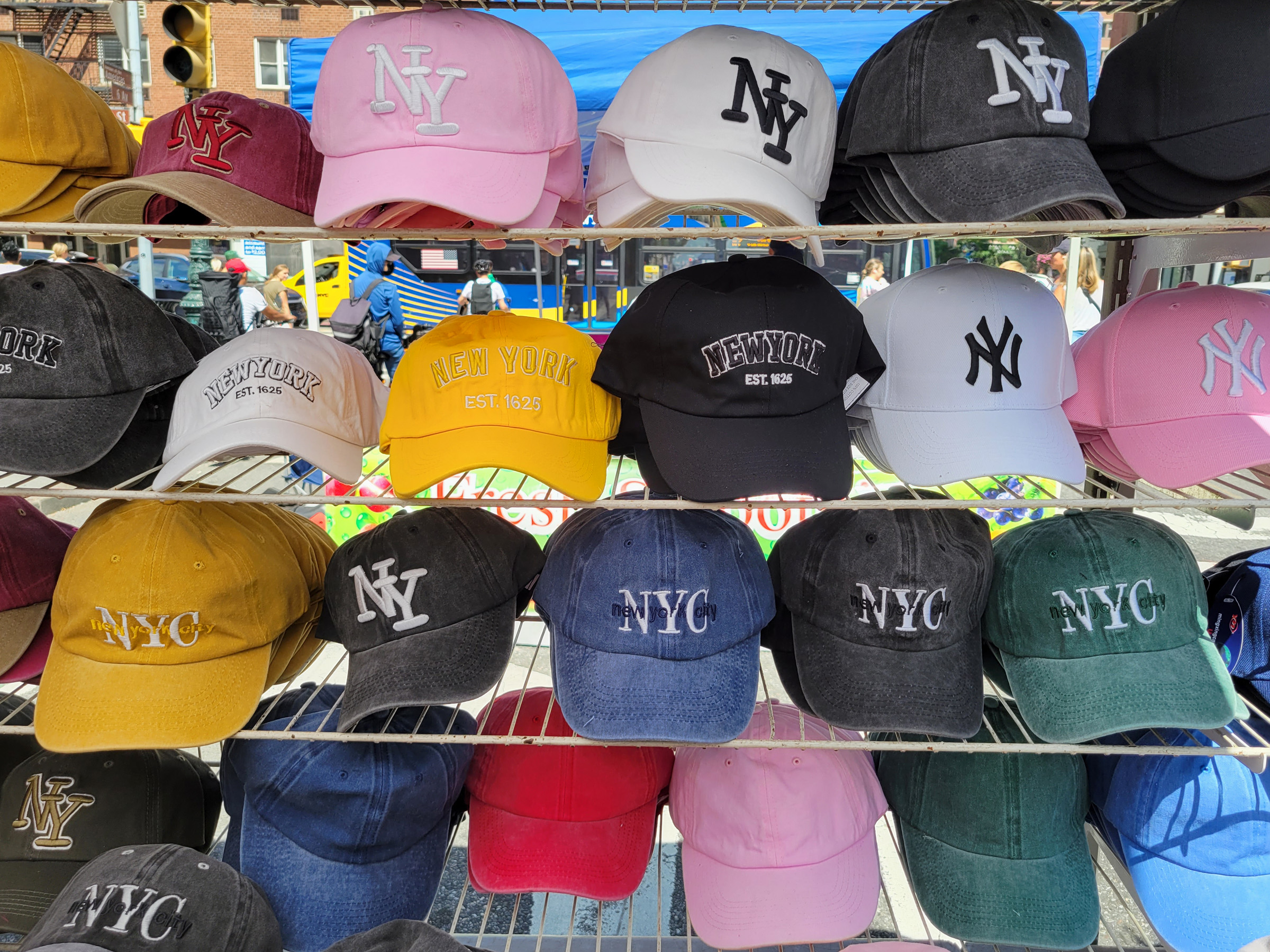장터가 끝나는 23rd St까지 다 올라와서야 찾던 가게를 발견했는데, 이 모자들을 전부 하나에 5달러의 가격으로 판매하고 있다. 아내가 선물용으로 몇 개 살까하고 열심히 써보라고 했는데, 최종적으로 마음에 드는 것이 없어서 구매하지는 않았다.