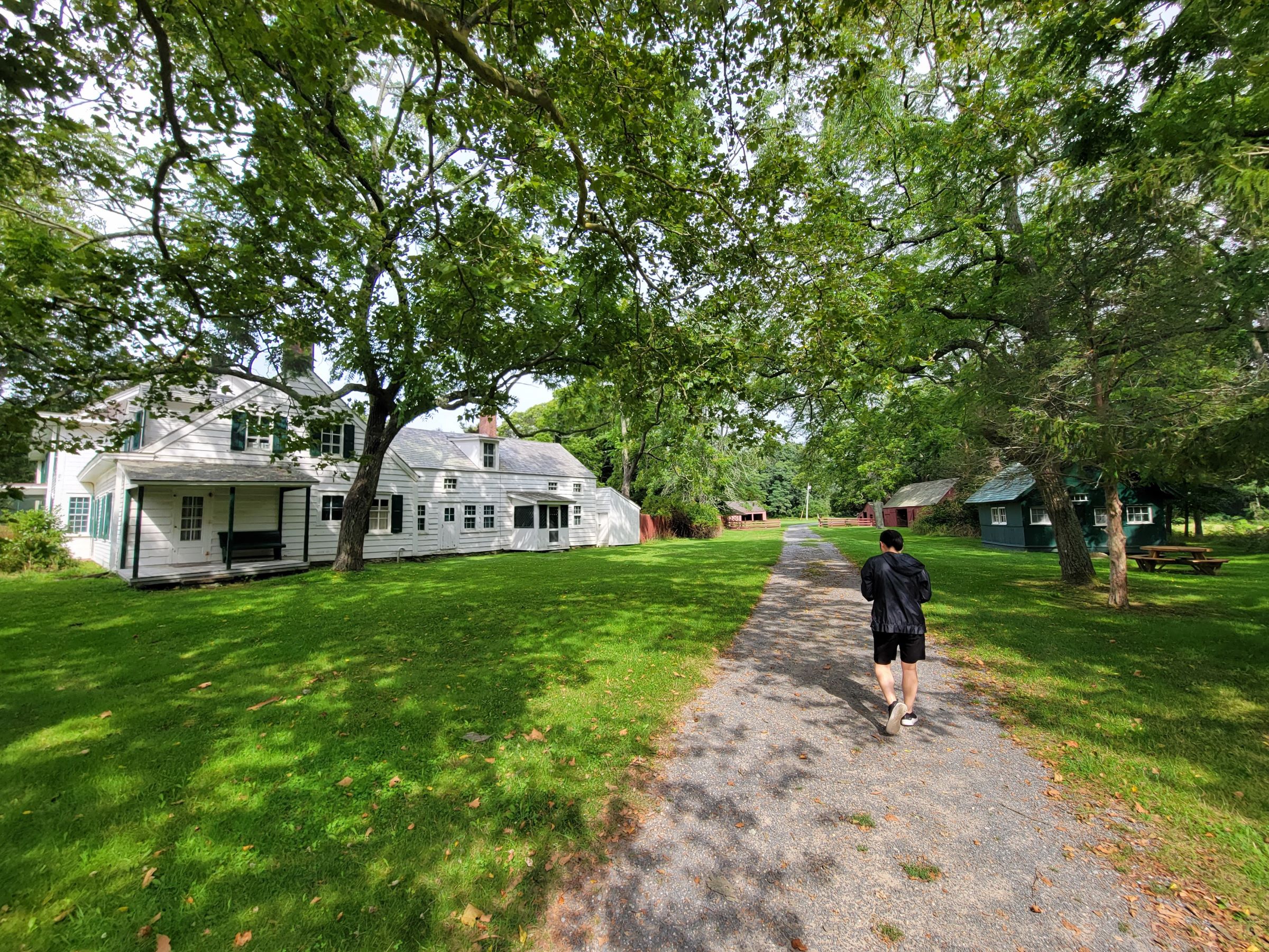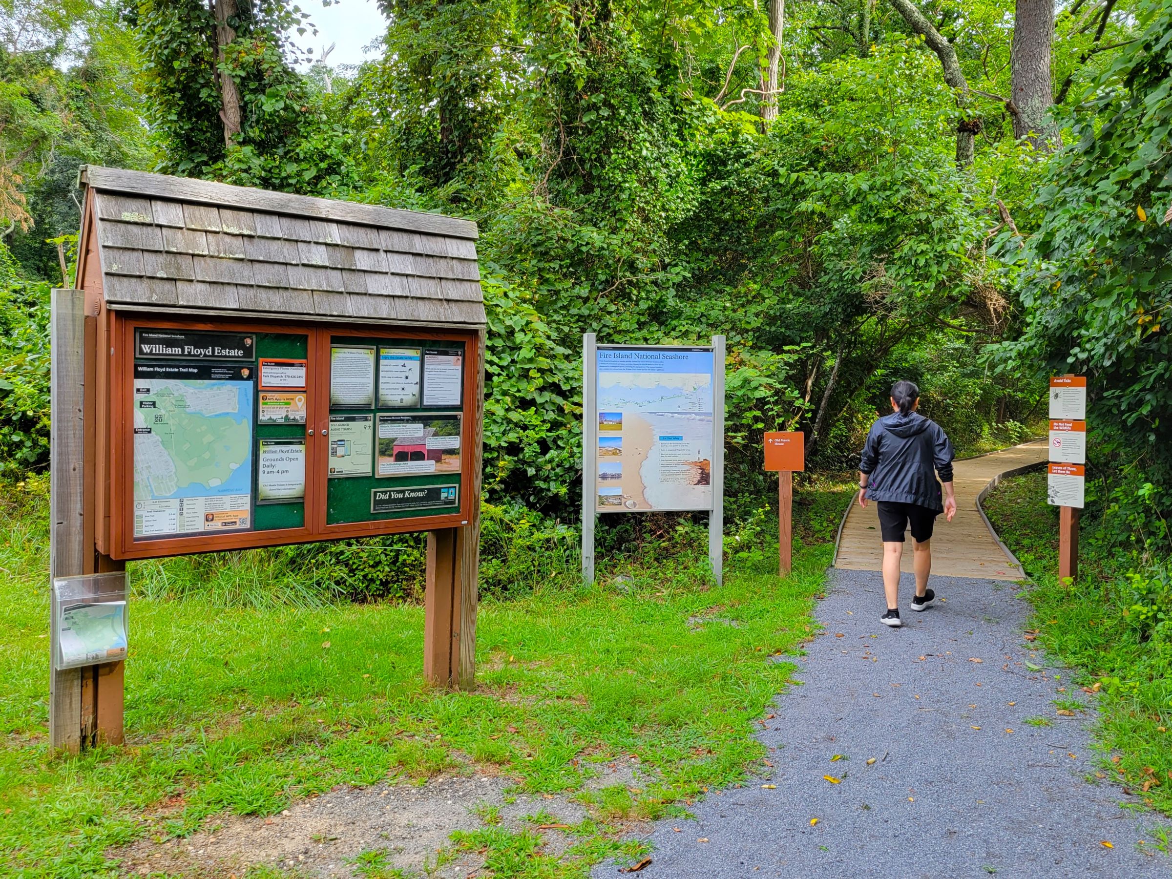 윌리엄 플로이드 사유지(William Floyd Estate)라 적힌 안내판 옆으로 나무까지 깔아서 잘 만들어 놓은 트레일로 씩씩하게 걸어 들어갔는데... 사방에서 달려드는 새까만 모기들 때문에 얼마 못 가서 뒤돌아 나와야 했다. 비치된 트레일맵을 보니까 이 길은 숲을 지나서 저택의 앞마당으로 바로 이어지는 샛길이고, 차가 들어가는 넓은 길은 주차장 위쪽에 따로 있어서 그리고 향했다.