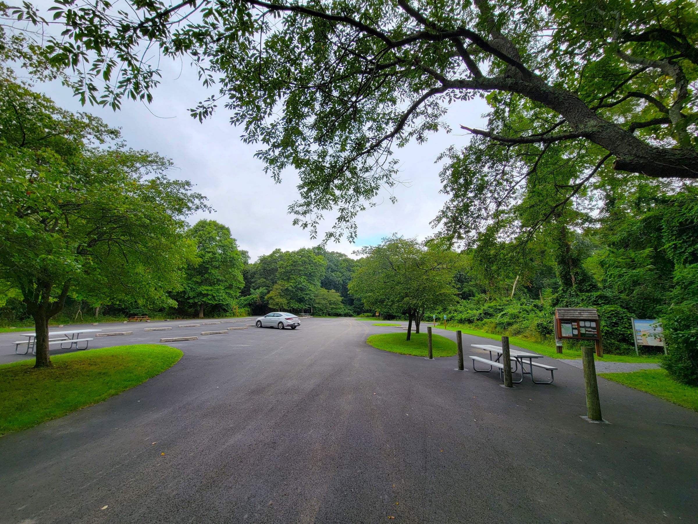 다시 다리를 건너 본섬으로 돌아와 주택가를 지나서 찾아 온 숲속의 이 넓은 주차장에는 우리가 이 날의 첫번째 손님이었다.