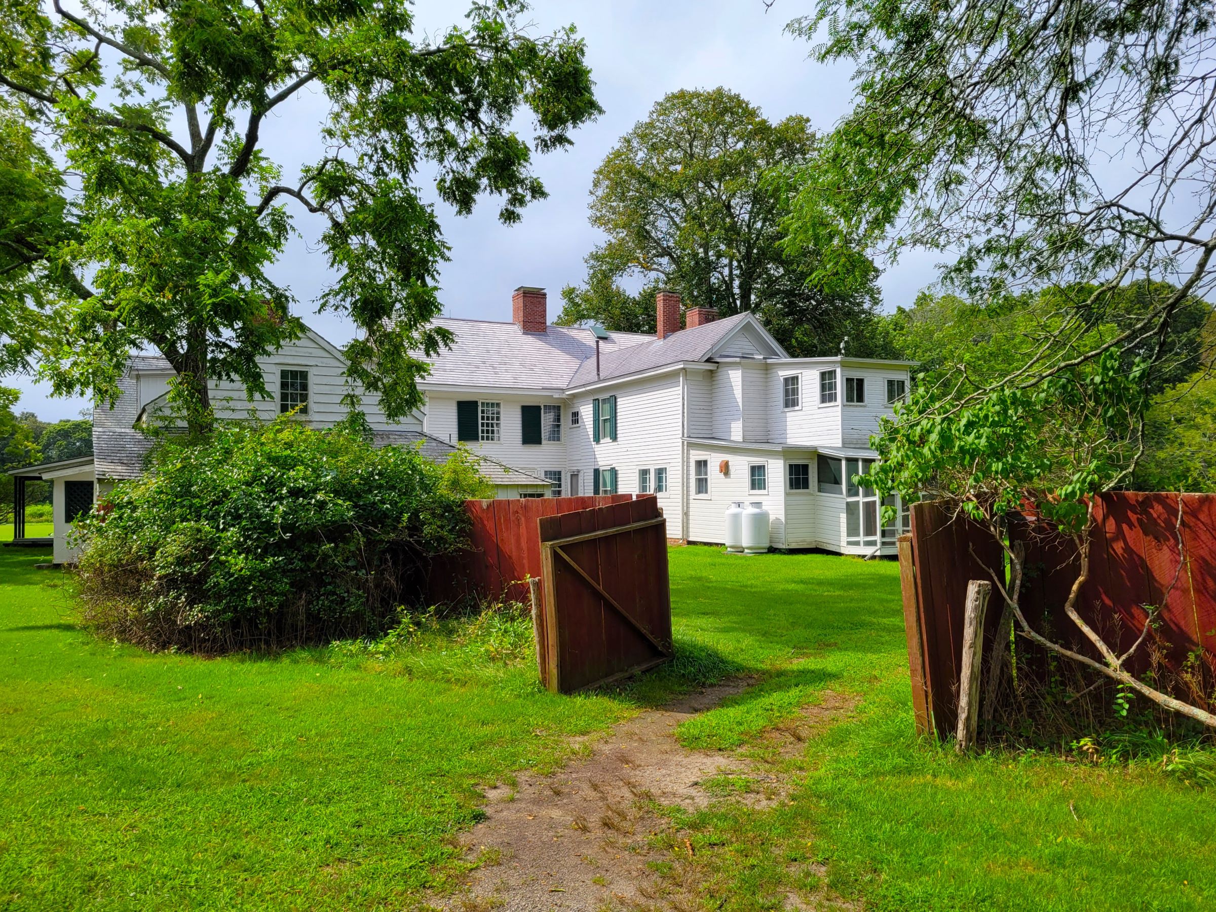조금 걸어가니까 본채인 Old Mastic House의 뒷뜰로 들어가는 입구가 나왔다. 윌리엄 플로이드(William Floyd)의 할아버지가 1718년에 여기 땅을 사서 플랜테이션을 만들고 작은 집을 처음 지은 후에, 9세대를 거치며 계속 증축되어서 25개의 방이 있는 지금의 모습으로 커졌단다. 그리고 미국 독립 200주년이던 1976년에 그의 후손들이 국립공원청에 내부의 골동품 가구들을 포함한 집은 물론 넓은 토지까지 모두 기증해서, 인접한 파이어 섬 국립해안 공원의 일부로 편입된 것이다.