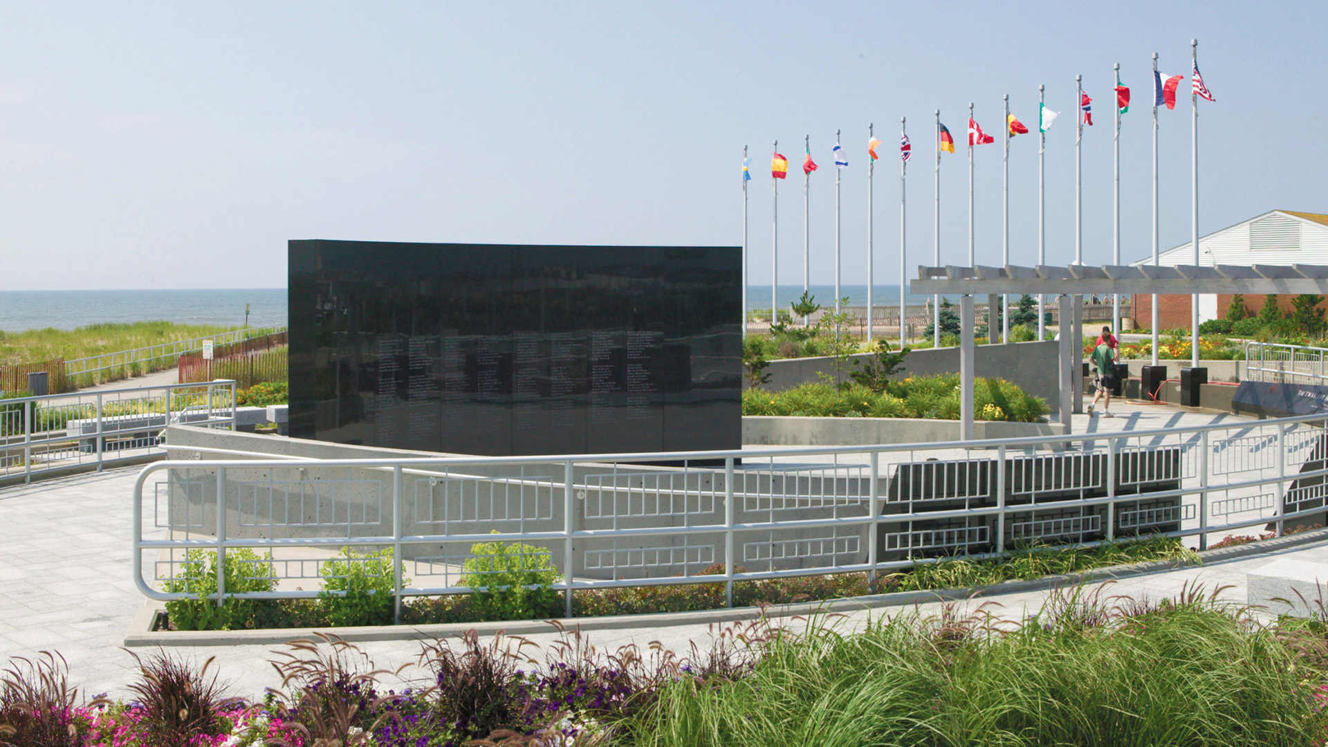1996년 7월 17일에 뉴욕 케네디 국제공항을 출발해 프랑스 파리로 향하던 트랜스 월드 항공(Trans World Airlines) 800편인 보잉 747 여객기가 이륙 12분만에 공중폭발해서 탑승자 230명 전원이 사망한 항공기 사고의 추모비인 TWA Flight 800 International Memorial and Gardens이 그 추락지점에서 가장 가까운 여기 바닷가에 만들어져 있는데, 14개의 국기는 사망자들의 국적을 상징한다. 이 사고는 9·11 테러를 제외하고 지금까지 미국에서 3번째로 큰 항공사고이며, 결국 TWA는 2001년 9·11 이후에 파산해서 아메리칸 항공에 합병된다.