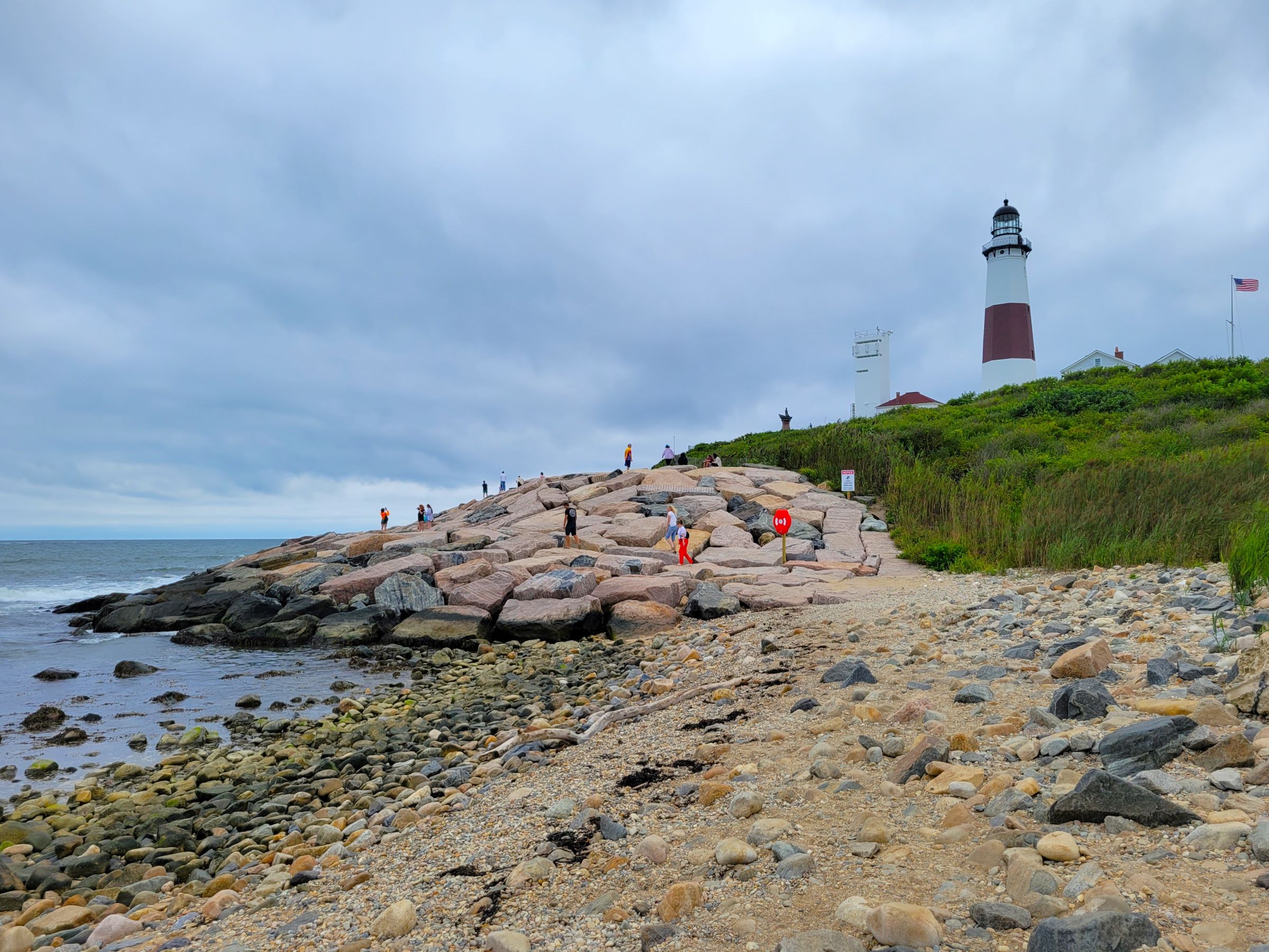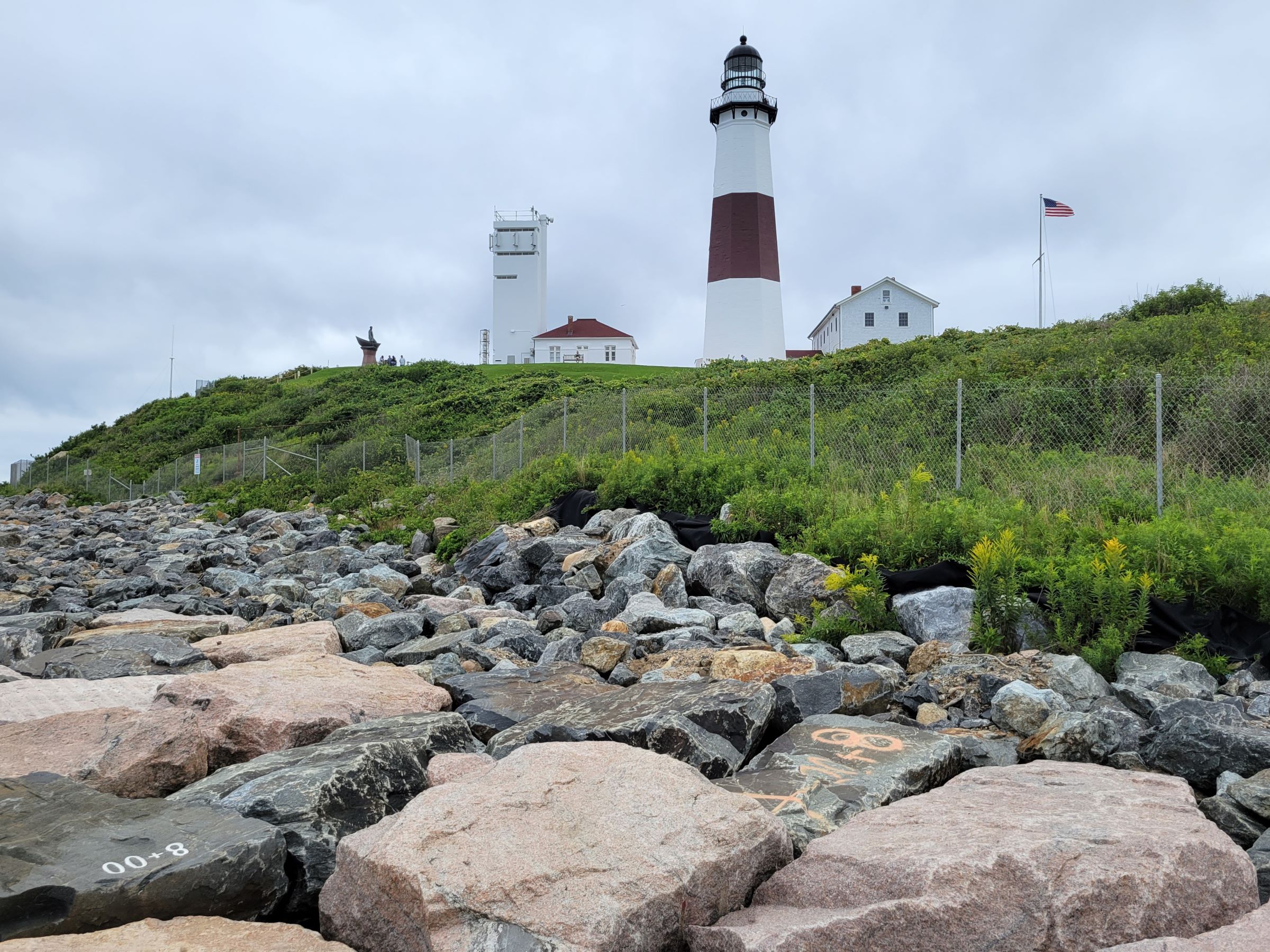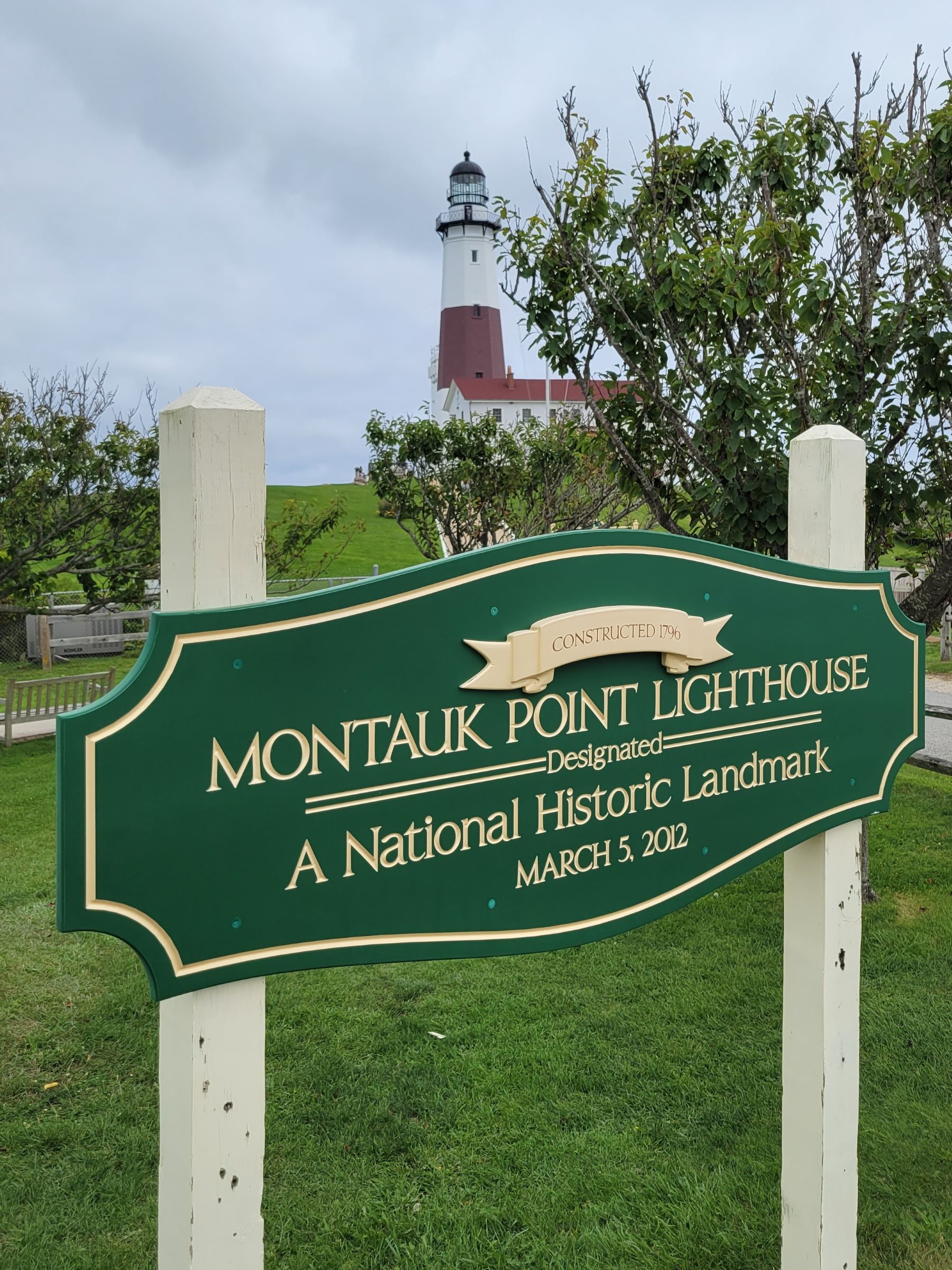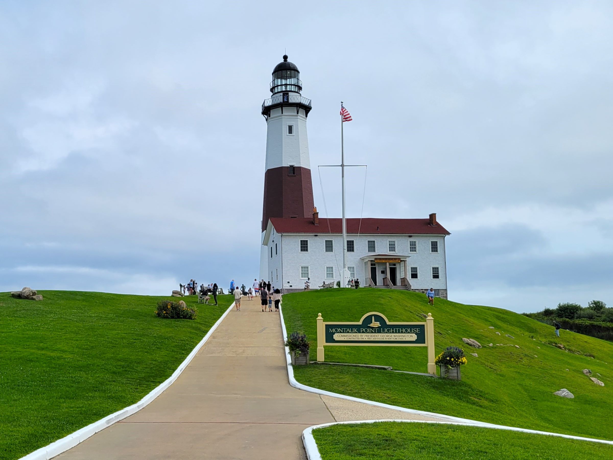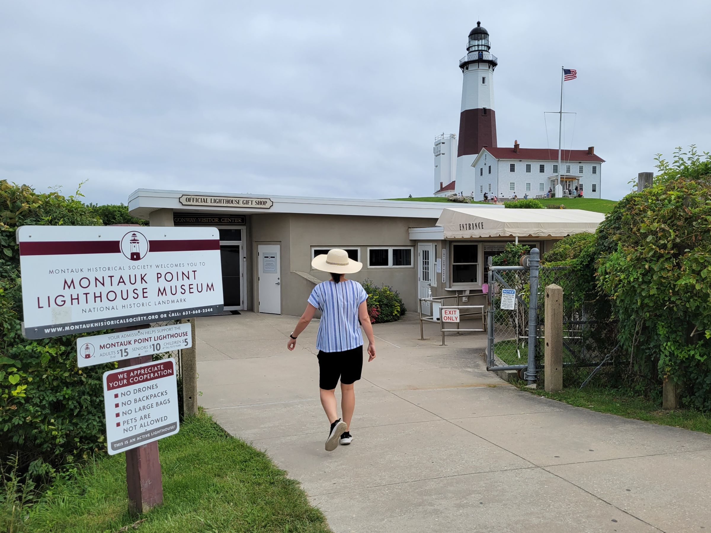 닫힌 정문 게이트 너머로 까치발을 하고 대표 사진을 찍었는데, 높이 34m의 몬탁포인트 등대(Montauk Point Lighthouse)는 미국의 초대 워싱턴 대통령의 서명으로 진행된 최초의 공공사업으로 1796년에 건설되었다. 특히 뉴욕주(New York State)에서는 최초로 만들어진 등대이면서, 미국에서 현재까지 불을 밝히고 있는 옛날 등대들 중에서도 4번째로 오래된 상당한 역사적 가치가 있단다.
