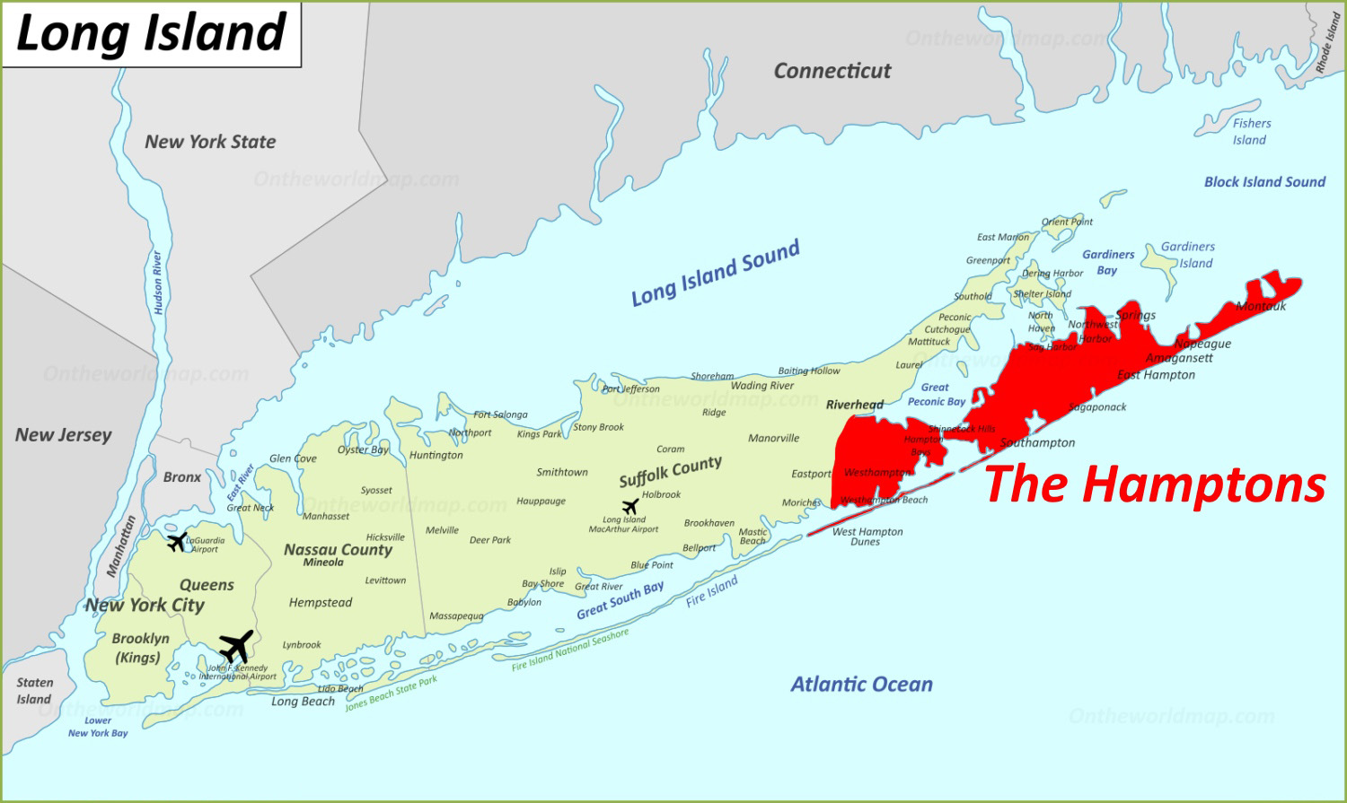 4년전에 미동부의 대학을 들어갔던 딸과 이야기를 하면서 처음 '올드머니(old money)'라는 표현을 들었던 기억이 난다. 뉴욕을 중심으로 한 미동부에서 할아버지 또는 그 윗대에서부터 지금까지 먹고 사는데 걱정이 전혀 없는 부자 집안을 보통 그렇게 부르는데, 그들을 구분하는 방법 중의 하나가 여름을 보낼 '햄튼의 별장'을 가지고 있냐는 것이란다. 우리같은 보통 사람들은 그냥 모텔 이름 '햄튼인(Hampton Inn)' 정도로만 알고 있었던, 뉴욕 주 롱아일랜드의 동쪽 끝 지역인 그 햄튼(또는 햄프턴)에 대해서 먼저 알아보자.