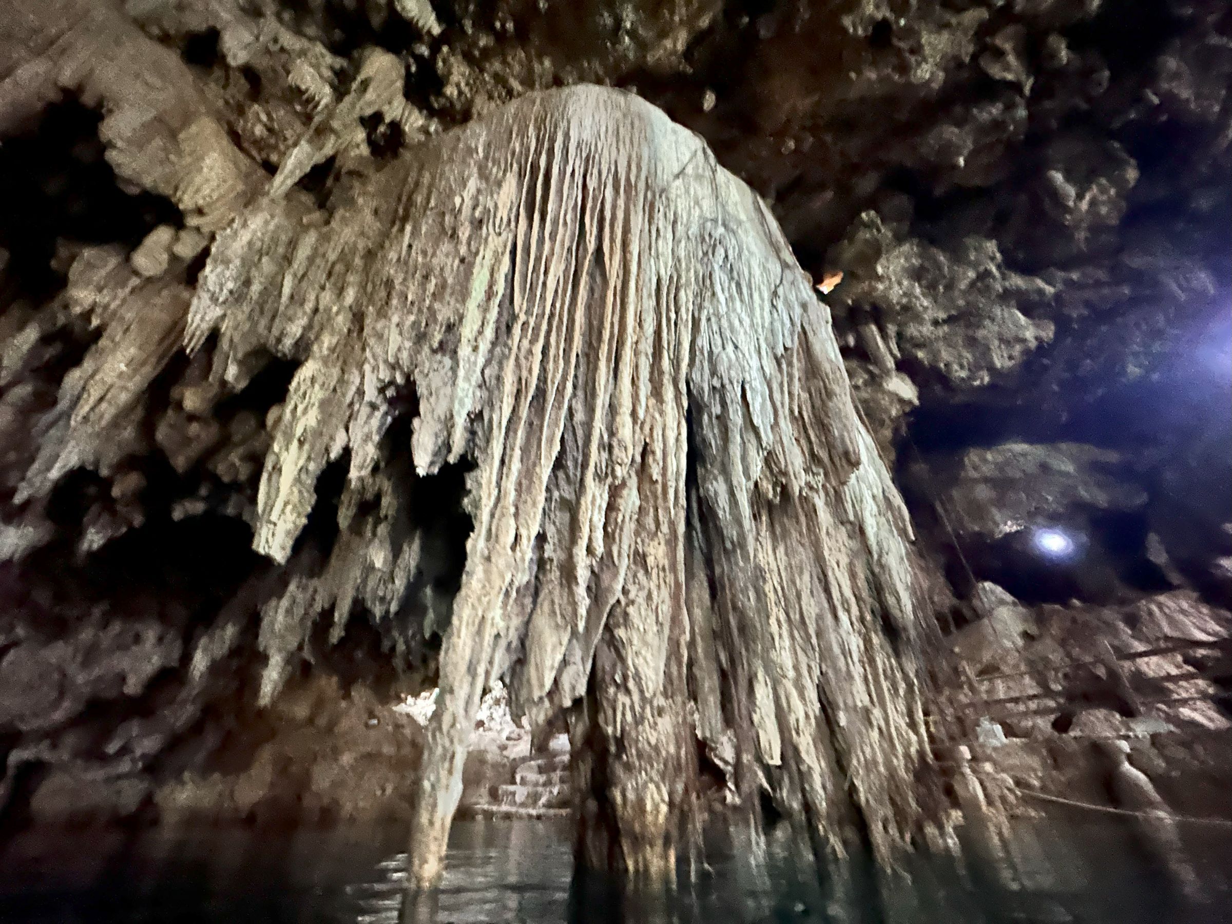 엑스케켄 세노테의 가장 큰 특징이자 볼거리는 바로 이렇게 거대한 동굴 종유석이 머리 위로 늘어져 있다는 것인데, 아래의 영상을 보시면 종유석 바로 아래로 헤엄쳐 가서 올려다 보는 모습도 보실 수 있다. 물론 멕시코 여행 마지막 날에도 이런 풍경을 원없이 보기는 하지만, 이 때부터 그 동안 즐겁게 투어를 했던 미국의 '동굴 국립공원'들이 시시하게 느껴지더라는... "그 동굴에 물 고여 있어요? 들어가 수영할 수 있어요?"
