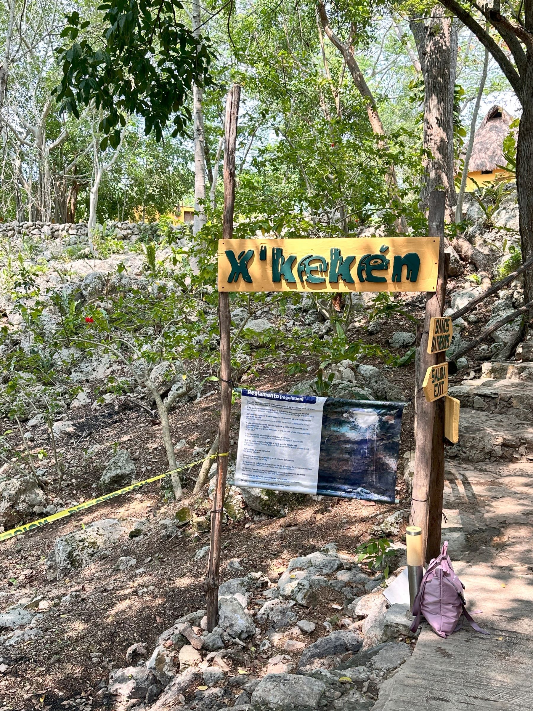 두번째 세노테 엑스케켄(Cenote X'kekén)은 자동차가 다니는 도로를 건너서 제법 남쪽으로 걸어가야 나왔다. 여기서도 따로 락커를 대여해주고 표 검사를 하는 사람이 있는데, 입장권만 보여주고 옷가방은 그대로 들고 지하로 내려갔다.