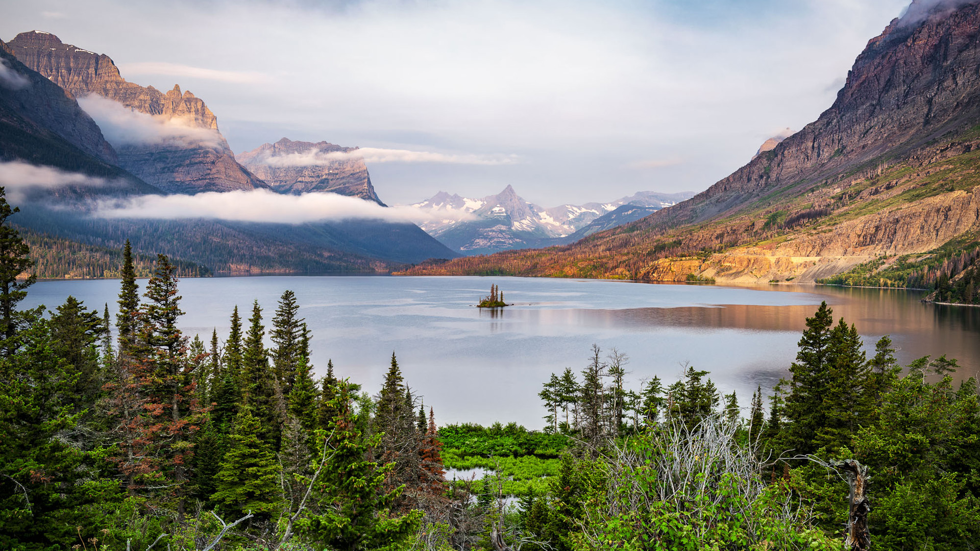 공원 동쪽 입구의 세인트메리 호수(Saint Mary Lake)의 유명한 풍경인데,