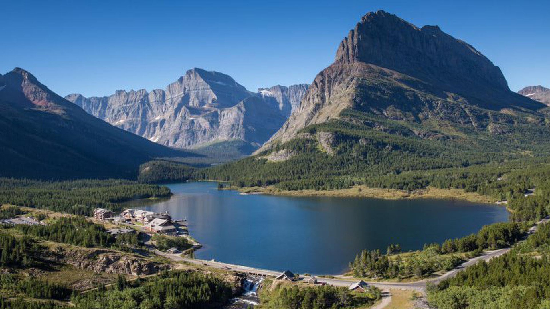 앞서 노란색으로 표시된 별도의 도로를 따라 들어가는 매니글레이셔(Many Glacier) 지역의 스위프트커런트 호수(Swiftcurrent Lake)의 풍경으로, 호숫가에는 역사적인 유명한 호텔이 있고 많은 인기있는 하이킹 코스가 여기서 출발을 한답니다.