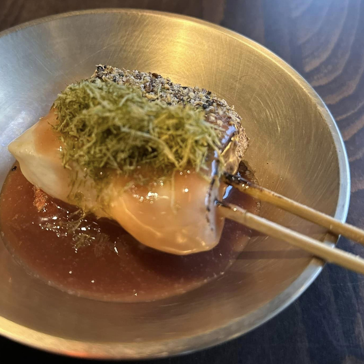 Soy Marinated Snow Crab, Seasonal Sprouts, Candied Anchovy, Charred Avocado, Seaweed Rice