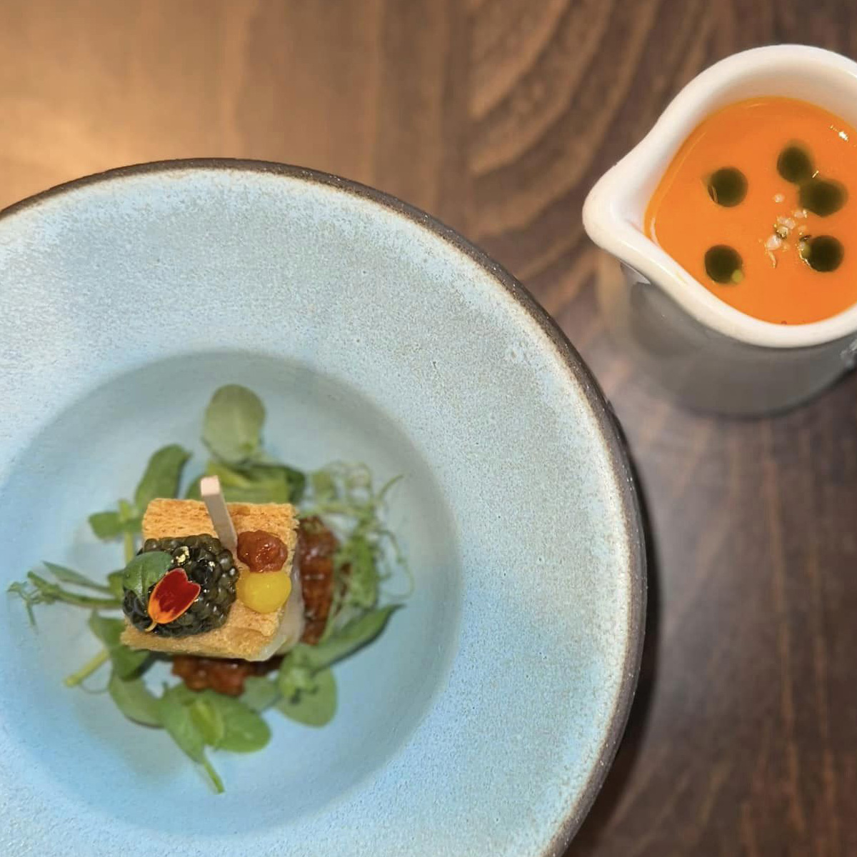 한식당 꼬치(Korean Restaurant Kochi)는 2019년에 여기서 개업을 했고, 작년 2022년에 미쉐린가이드(Michelin Guide)에서 별 하나를 받아서, 요즘 한창 뜨고 있는 퓨전한식 레스토랑이란다. 몇주 전에 예약할 때 벌써 실내에는 자리가 없어서 야외 테이블로 안내되었고, 기본 9가지 코스 요리를 아내가 찍은 사진들로 메뉴판의 제목 및 설명과 함께 차례로 보여드린다. (서두에 언급한 것처럼 위기주부는 음식의 맛을 디테일하게 묘사할 수 있는 능력이 없음 T_T)