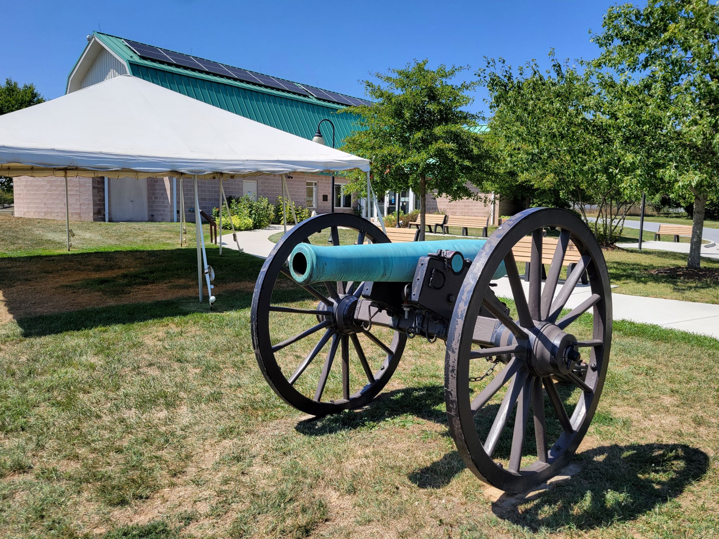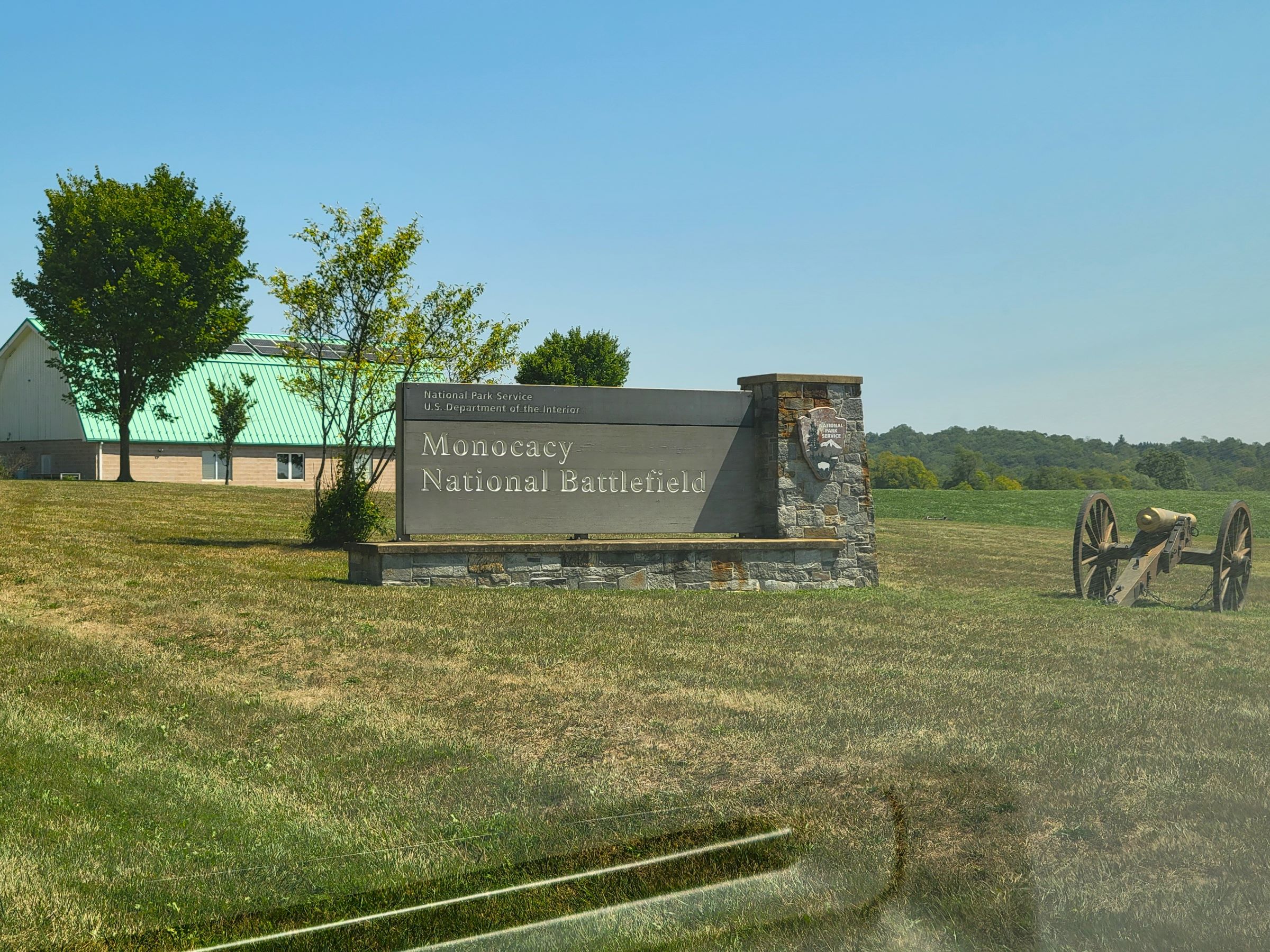그 보다 2년전인 1862년 9월에 남군이 처음으로 포토맥 강을 건너서 싸웠던 앤티텀 전쟁터를 구경하고 시간이 빠듯했지만, 약 8만의 인구로 메릴랜드 주에서 2위 도시인 프레더릭(Frederick) 근처의 모노카시 국립전쟁터(Monocacy National Battlefield)를 또 찾아왔다. 자동차 앞유리를 통해서 공원의 간판 사진을 급히 찍고는 왼편의 비지터센터 주차장에 차를 세웠다. (인구수 1위인 볼티모어는 약 60만^^)