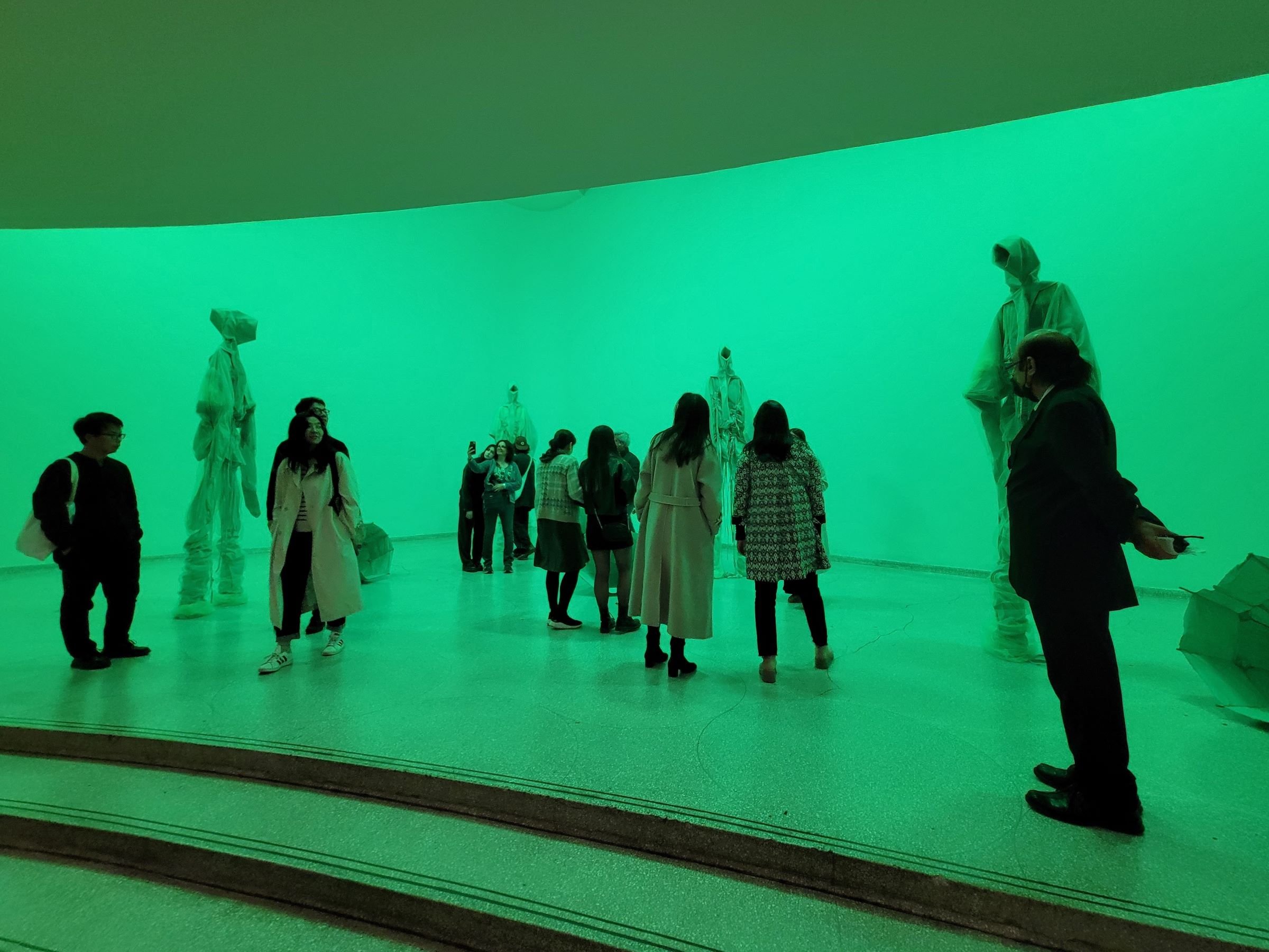 나선형 통로의 주 전시장(Main gallery)에서 내년 4월까지 진행되는 Going Dark: The Contemporary Figure at the Edge of Visibility 전시의 대표작처럼 보이는 으스스한 작품이다. 바로 남쪽에 있는 클래식한 메트로폴리탄 미술관(Metropolitan Museum of Art)과 대비되는 이러한 현대미술 중심의 구겐하임은, 본래 1937년에 비대상회화미술관(Museum of Non-objective Painting)이라는 이름으로 미드타운에 처음 문을 열었단다.