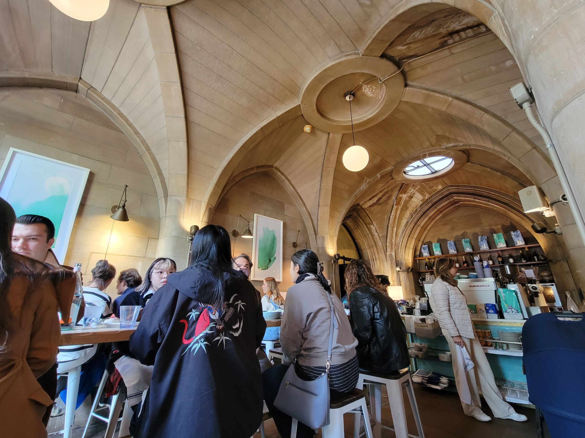신고딕 양식으로 1929년에 완공된 Church of the Heavenly Rest 성공회 교회 건물의 일부에 카페가 들어서 있기 때문이다. 안에 3명 자리가 나려면 40분 이상 기다려야 한다고 해서, 대기를 걸어놓고는 다른 곳에서 간단한 샌드위치와 커피를 한 입 먹고 다시 돌아왔다.^^