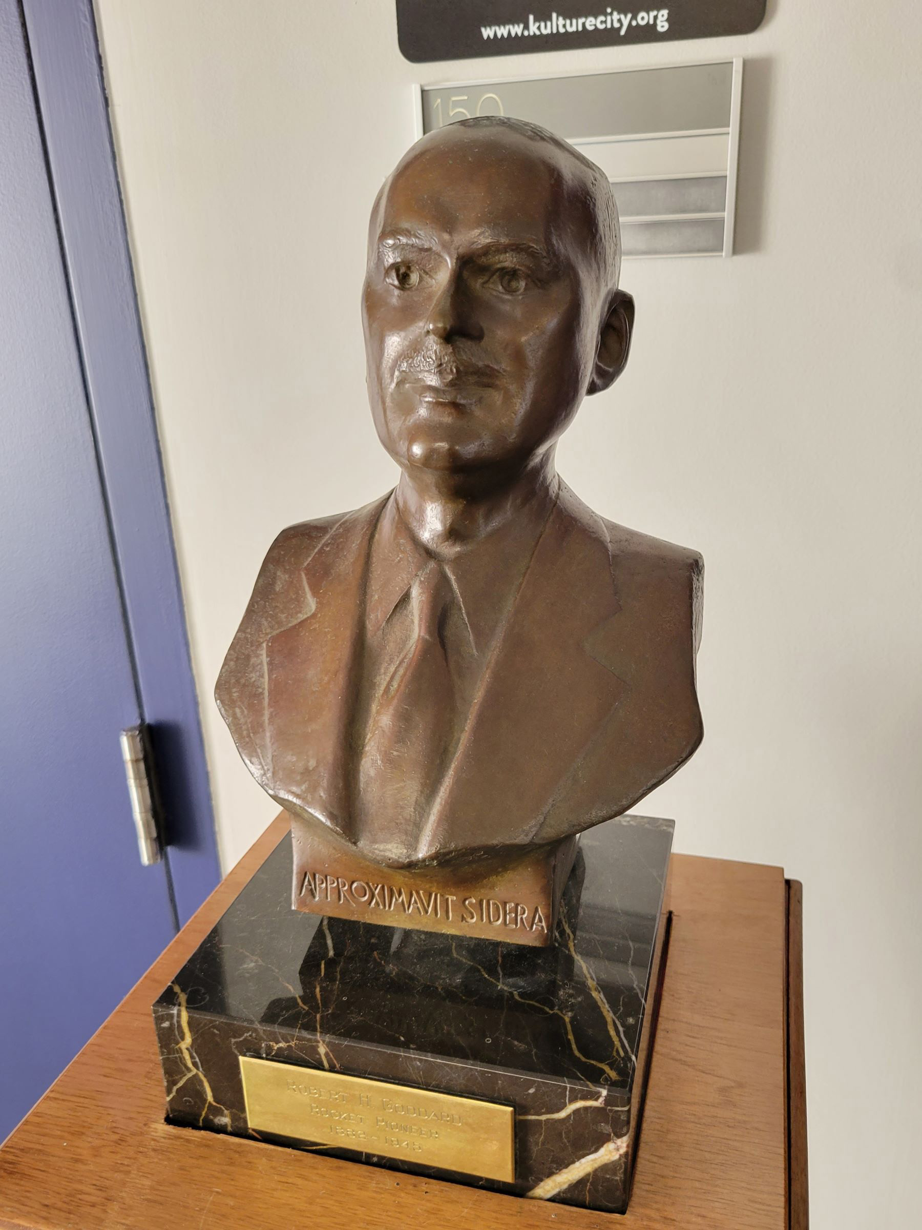 연구 센터의 이름은 미국의 물리학자로 '로켓 공학의 아버지'라 불리는 로버트 고다드(Robert H. Goddard)에서 유래했다. 의외로 그에 대한 전시는 통로 한쪽에 대충 놓여진 이 흉상이 전부였는데, 새겨진 라틴어 Approximavit Sidera의 뜻은 "He approached the stars"라 한다. 그는 일찌감치 1919년에 액체연료 로켓(liquid-fueled rocket)으로 사람이 달까지 갈 수 있다는 논문을 발표했지만, 뉴욕타임스가 "고등학교 수준의 과학도 모른다"고 사설로 비판할 정도로 시대를 앞서 간 사람이었다.