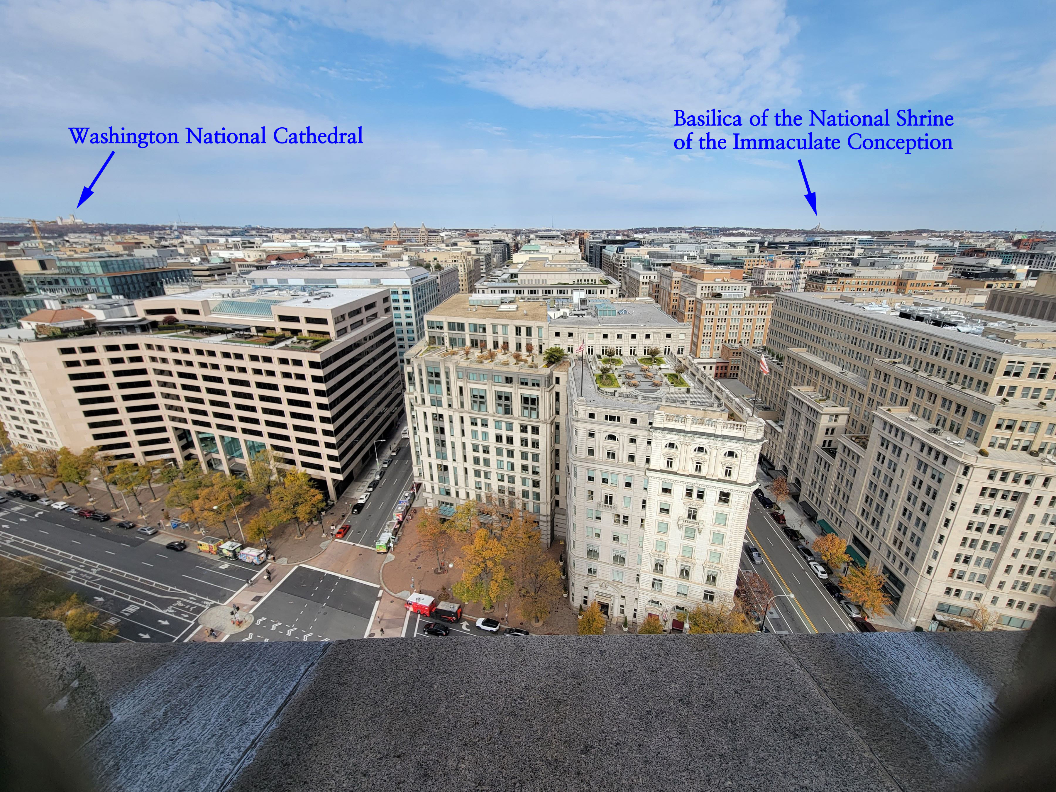 미국 대통령은 워싱턴DC 국회의사당에서 취임식을 한 후에 백악관까지 퍼래이드를 하게 되는데, 두 곳을 비스듬한 직선으로 연결하는 도로가 바로 펜실베이니아 애비뉴(Pennsylvania Avenue)로 많은 사람들이 흔히 "America's Main Street"라 부르는 길이다. 미국의 수도를 대표하는 중심가답게 왕복 8차선의 대로 좌우로는 많은 역사적인 건물이 세워져 있고 다수의 동상과 기념물들이 자리잡고 있는데, 그 중에서 꼭 올라가보고 싶었던 빌딩의 전망대를 이 지역으로 이사를 온 지 정확히 2년만에 찾아갔다.