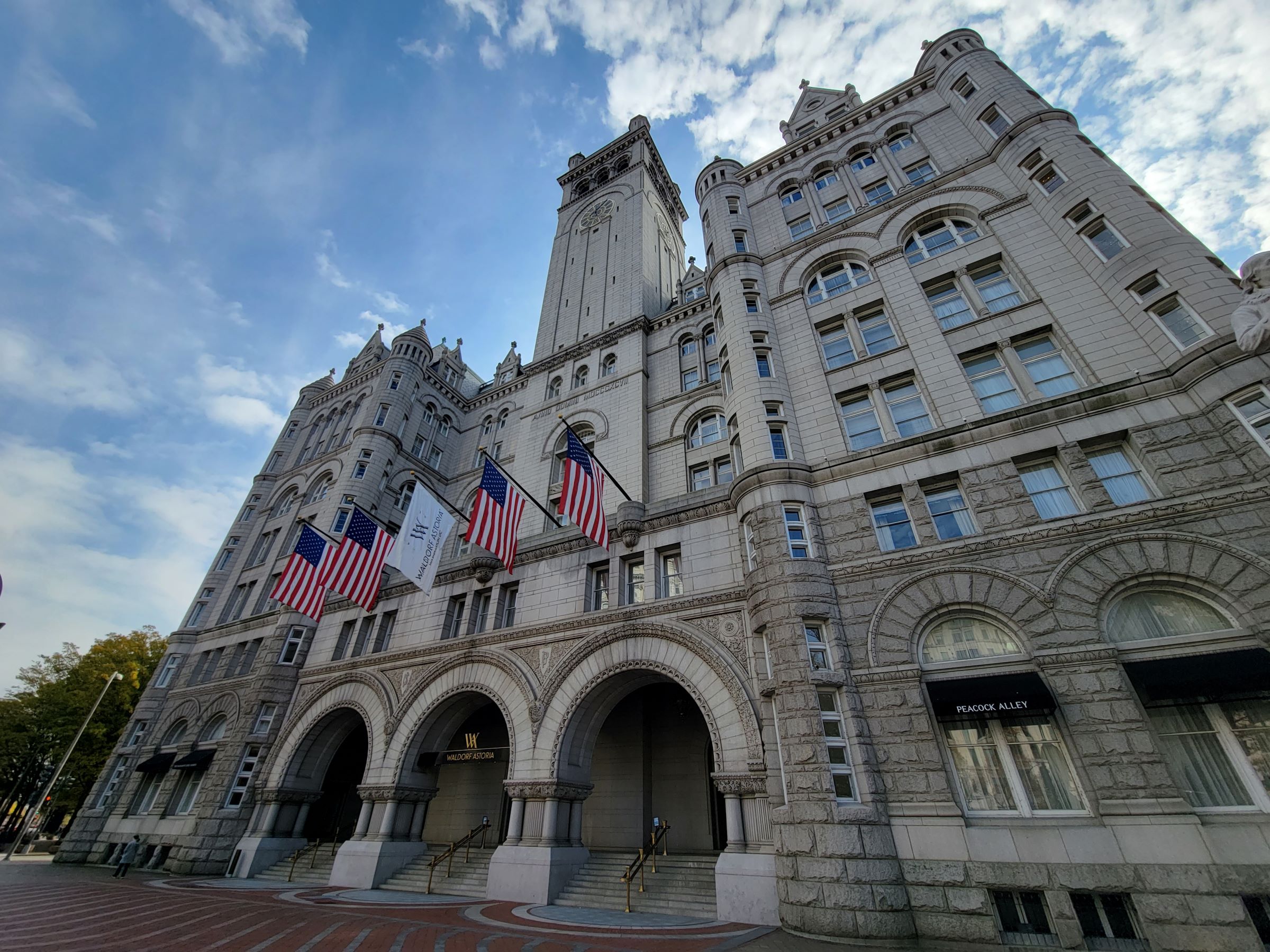 건물 역사 이야기를 마저 하자면... 원래 호텔업자이던 대통령이 백악관 바로 근처에서 (직접은 아니지만) 장사를 하는게 법적으로 여러가지 문제의 소지가 있었고, 또 트럼프에 반대하는 정치 시위가 호텔앞에서 자주 벌어지는 것도 영업에 도움이 되지 않았단다. 그래서, 2019년부터 트럼프 재단은 매각을 추진했고, 결국 그가 재선에 실패한 다음 해인 2021년에 남은 임대권한을 힐튼에 3억7천5백만불에 팔아서 1억불 이상 차액을 남겼단다! 그리고 정확히 1년 후인 2022년 6월에 지금의 월도프 아스토리아(Waldorf Astoria) 호텔이 새로 문을 연 것이다.