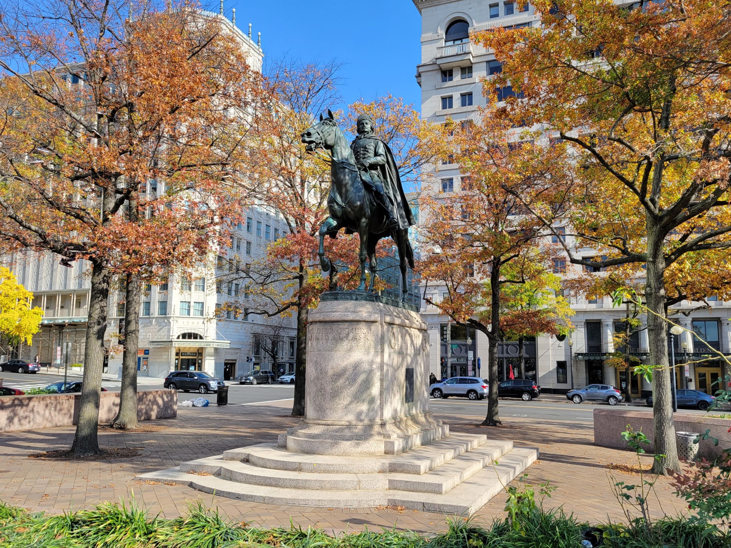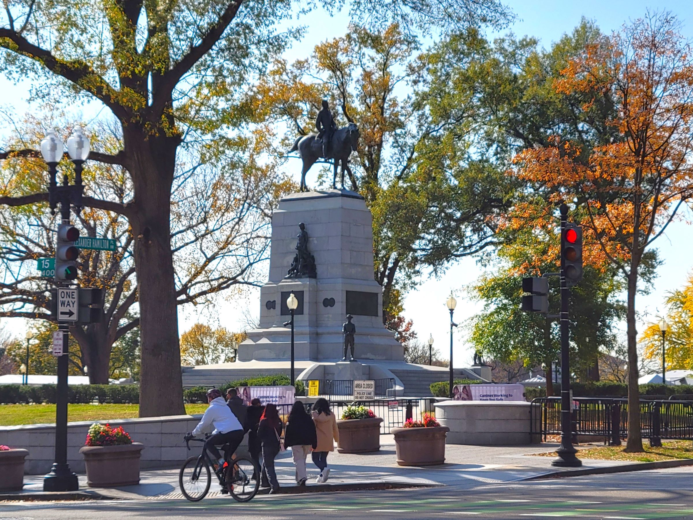 호텔을 나와 15th St를 건너면 남쪽 내셔널몰 방향으로 높은 기단의 기마상이 눈에 띈다. 우리 가족에게는 남북전쟁의 영웅보다는 '세계 최대의 나무' 이름으로 처음 기억되었던 윌리엄 테쿰세 셔먼(William Tecumseh Sherman) 장군 기념물인데, 보안구역 안에 위치해 있어서 바로 앞까지 갈 수는 없게 막혀있다. 그리고 '남의 집' 잔디밭을 가로지를 수는 없으니 여기서 북쪽으로 돌아가기로 한다.