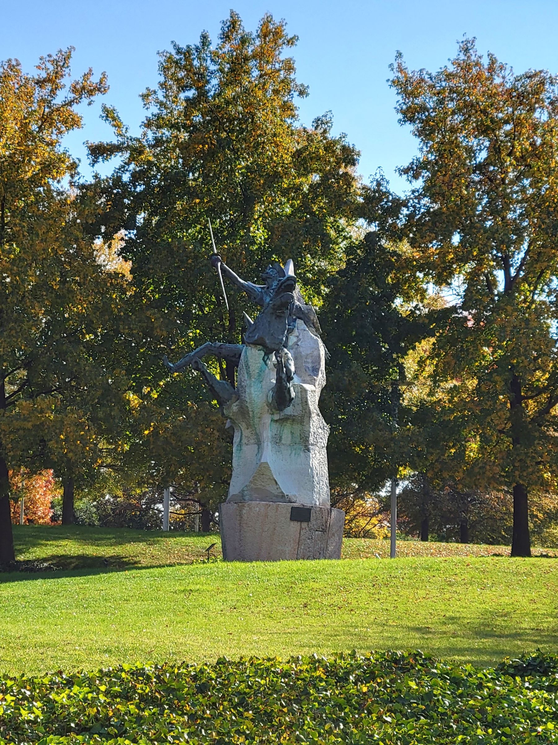 이렇게 정면에서 봐서는 무슨 동상인지 감이 안 오실텐데... 바위와 청동을 결합해서 만든 돈키호테(Don Quixote) 조각으로, 스페인 국왕 부부가 미국독립 200주년을 기념해서 1976년에 선물한 작품이란다. 옆에서 찍은 다른 사진을 보면 기다란 창을 든 돈키호테가 왠지 괴물처럼 보이는 그의 말 로시난테(Rocinante)를 타고 바위를 부수며 나오는 듯한 역동적인 느낌이다.