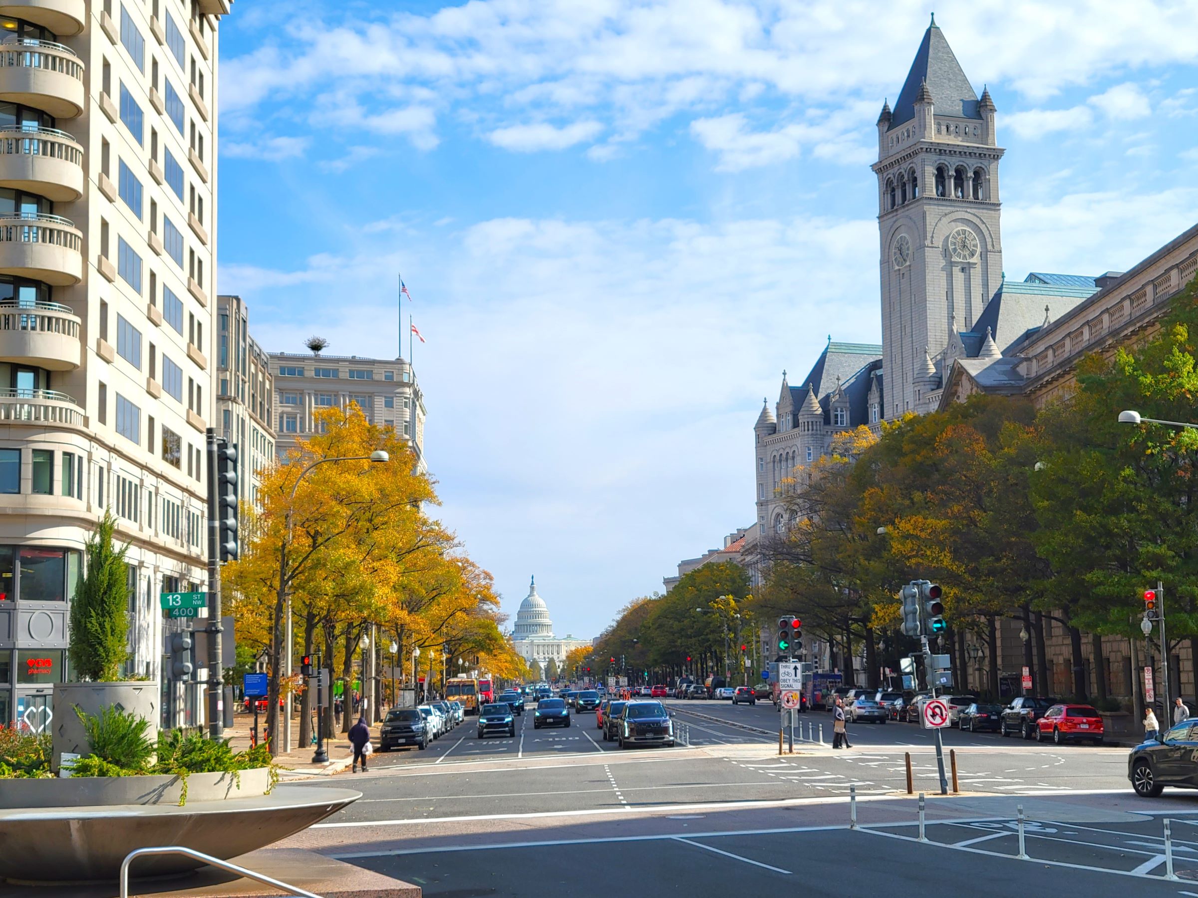 공연장의 비싼 주차비를 아끼기 위해 지하철을 이용하기로 한 김에, 조금 일찍 DC에 도착해서 올라가봤던 옛날 우체국 건물의 시계탑이 오른편에 서있다. 가운데 멀리 보이는 의사당에서 백악관까지 이어지는 펜실베니아애비뉴 국립사적지(Pennsylvania Avenue National Historic Site)의 소소한 볼거리들을 구경하며 이제 뒤돌아 케네디센터까지 걸어가보자~
