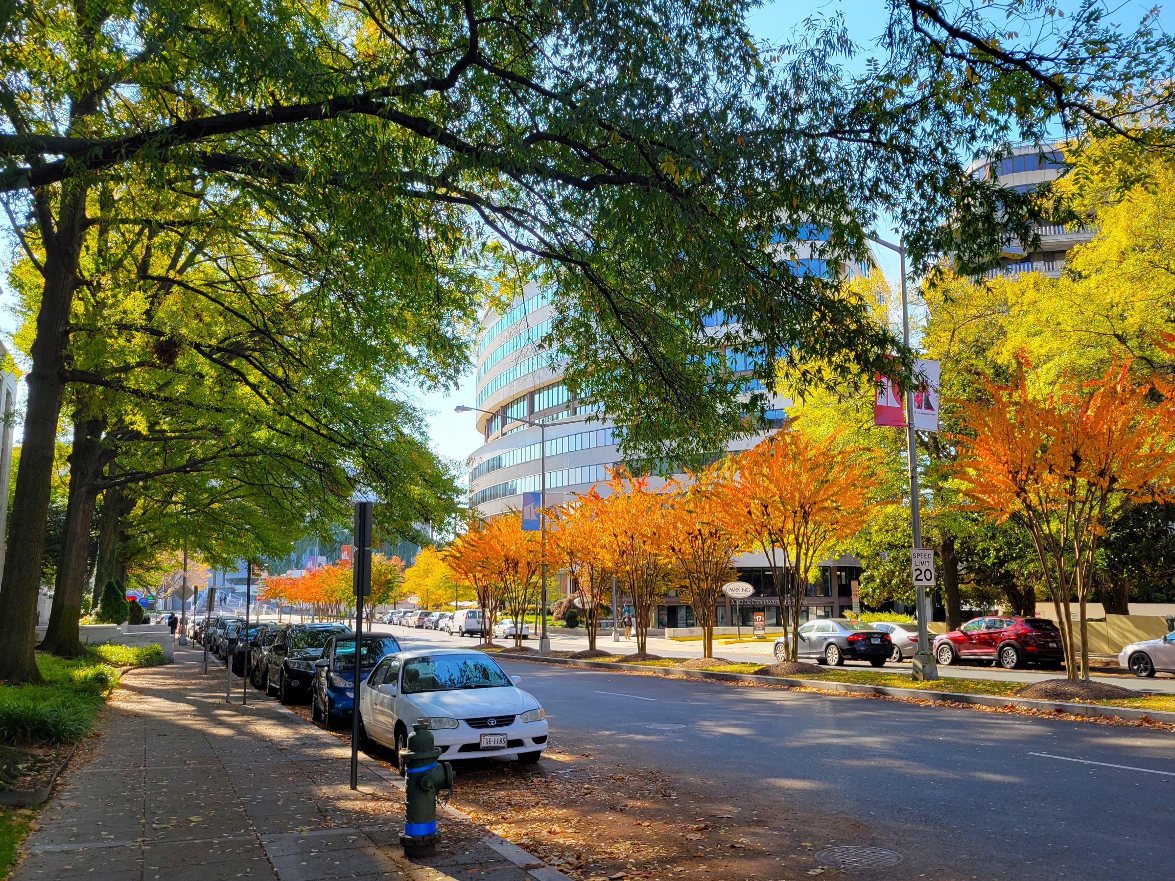 케네디센터 배너가 걸려있는 가로등 옆으로 나무들 색깔이 아주 이뻤는데, 확실히 DC는 도시라서 그런지 시골인 우리 동네보다는 단풍이 조금 늦게까지 남아있는 듯 했다. 문제는 걸어오면서 배가 고파 쓰러질 지경이었기 때문에 지나온 대학 캠퍼스와 박물관, 또 이런 단풍을 제대로 구경할 여력이 전혀 없었다는 것...