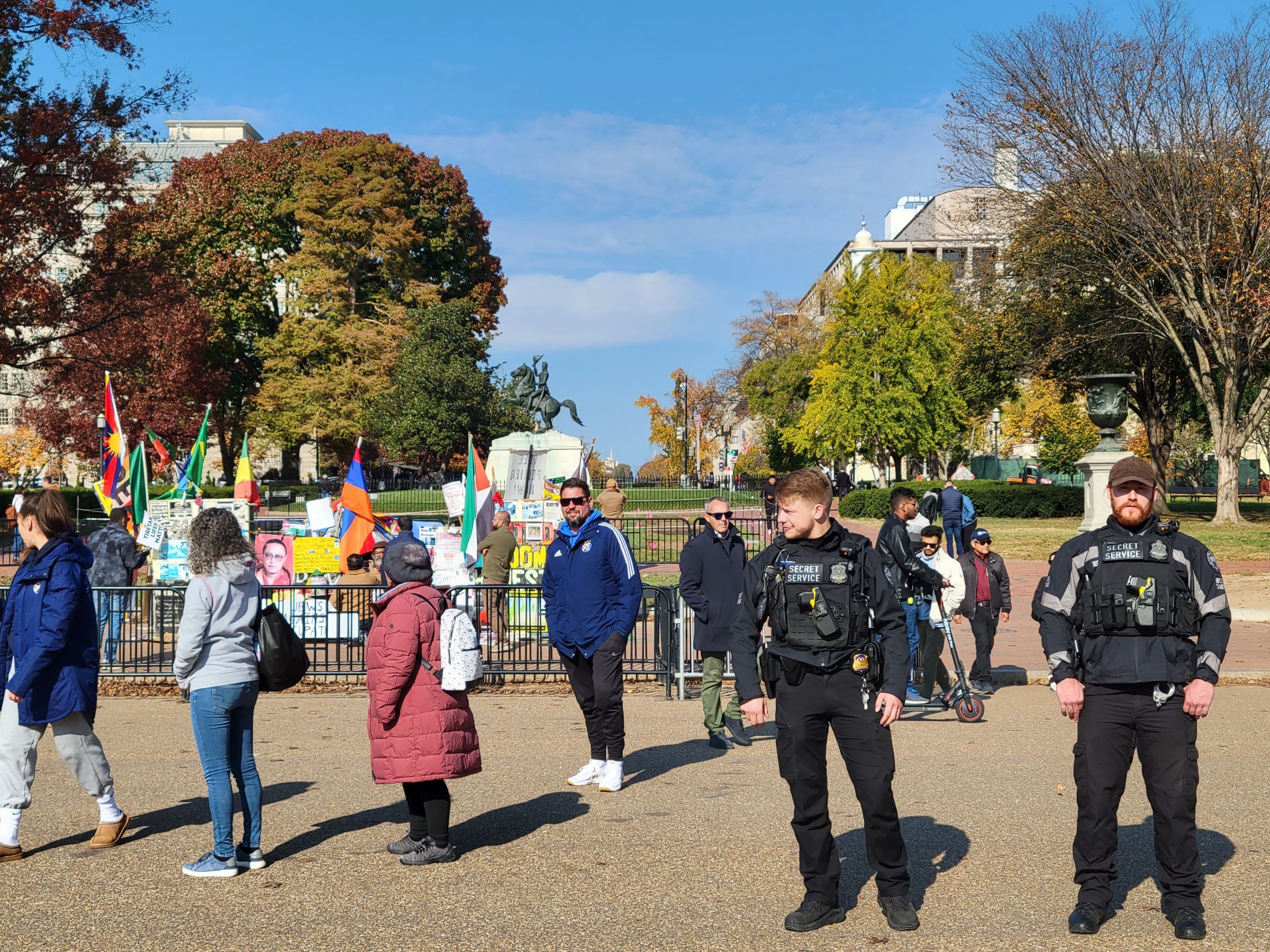 1981년부터 저 자리에 들어섰다는 '세계평화'를 주장하는 텐트가 요즘은 다 부질없어 보이고, 비밀경호국 경찰들이 작년 여름보다 주변에 훨씬 많이 보였다... 멀리 나폴레옹처럼 모자를 벗어서 인사하고 있는 기마상을 포함해 여기 화이트하우스 주변에 대한 상세한 설명은 여기를 클릭해서 작년에 올린 포스팅을 보시면 된다.