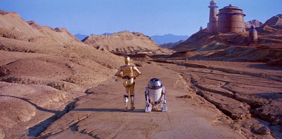 위기주부가 좋아하는 <스타워즈> 시리즈의 첫번째 영화에서 C-3PO와 R2-D2가 등장하는 타투인 행성의 이 장면이 촬영된 곳은 트웬티뮬팀 캐년(Twenty Mule Team Canyon)의 비포장 도로인데, 첫번째 방문에서 차를 몰고 지나갈 때는 모르고 그냥 지나쳤었습니다.
