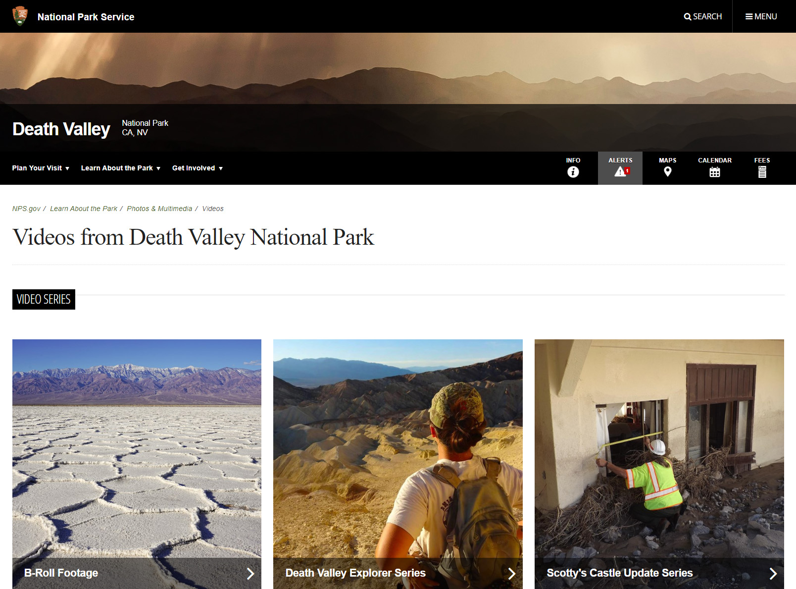 오래간만에 국립공원 홈페이지를 들어가보니, 멀티미디어 코너에 자유롭게 사용 가능한 영상인 B-Roll Footage가 있습니다. 유튜브에 등장하는 대부분의 비디오는 그 8개의 영상을 편집해서 사용했음을 알려드립니다. "Courtsey of the National Park Service."