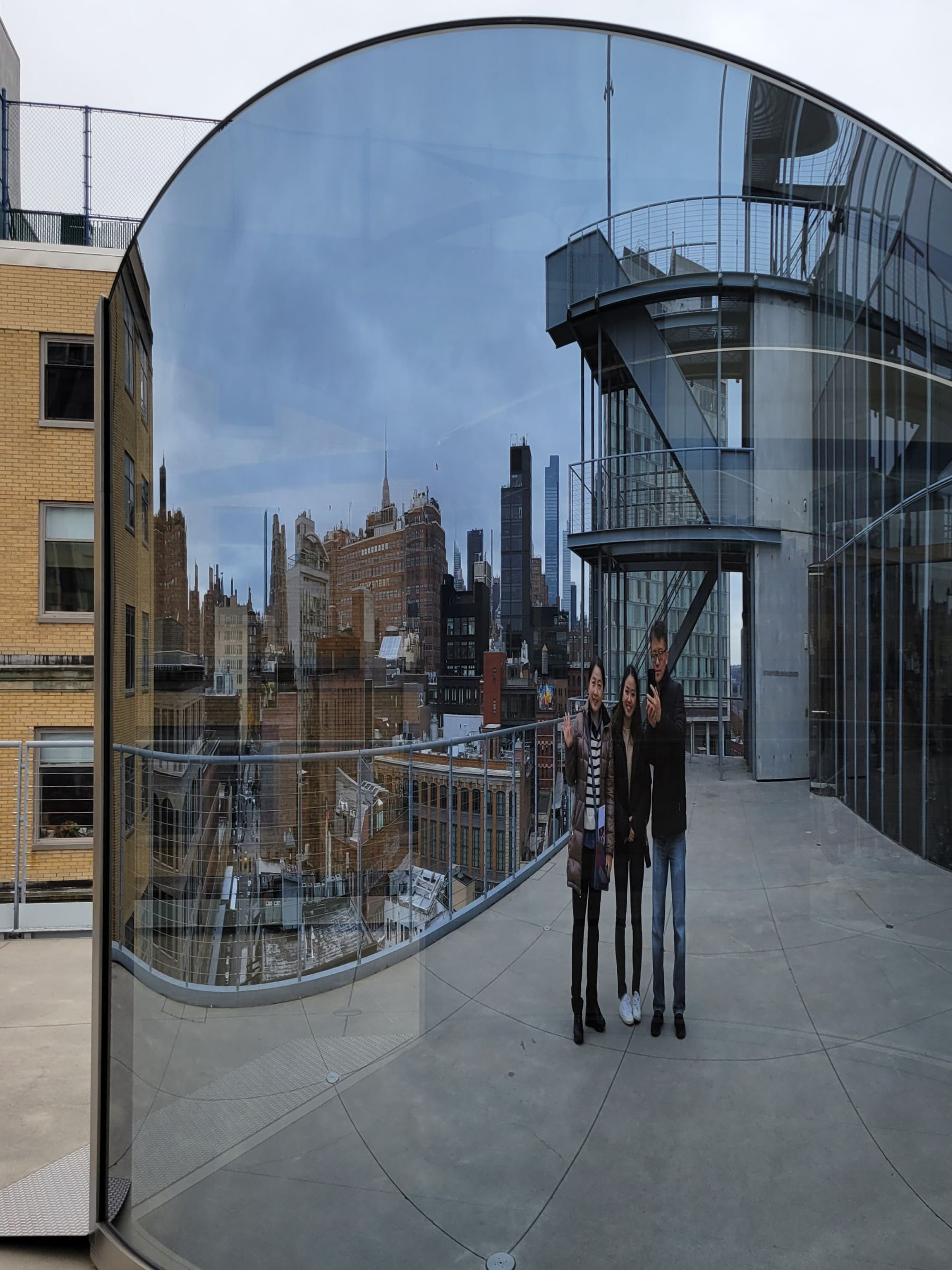 발코니에 있던 이 어두운 볼록거울도 무슨 작품이었는데, 덕분에 '롱다리 가족사진'을 찍을 수 있었다. 이번에는 야외 철제계단을 이용해서 또 아랫층으로 고고~
