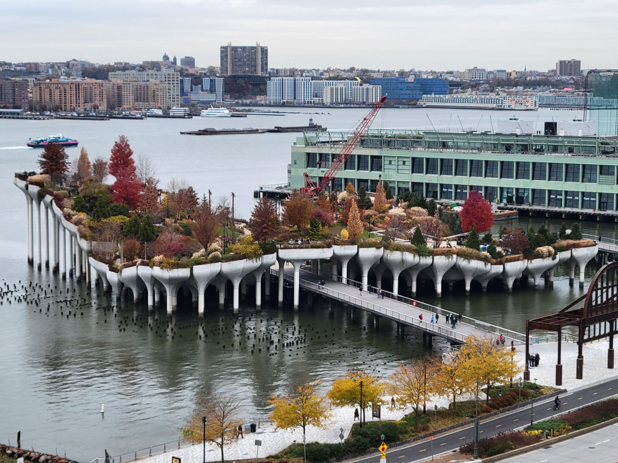 허드슨 강 위에는 작년 여름에 방문했던 3천억원짜리 인공섬 리틀 아일랜드(Little Island)가 늦은 단풍이 든 모습으로 떠있었다.