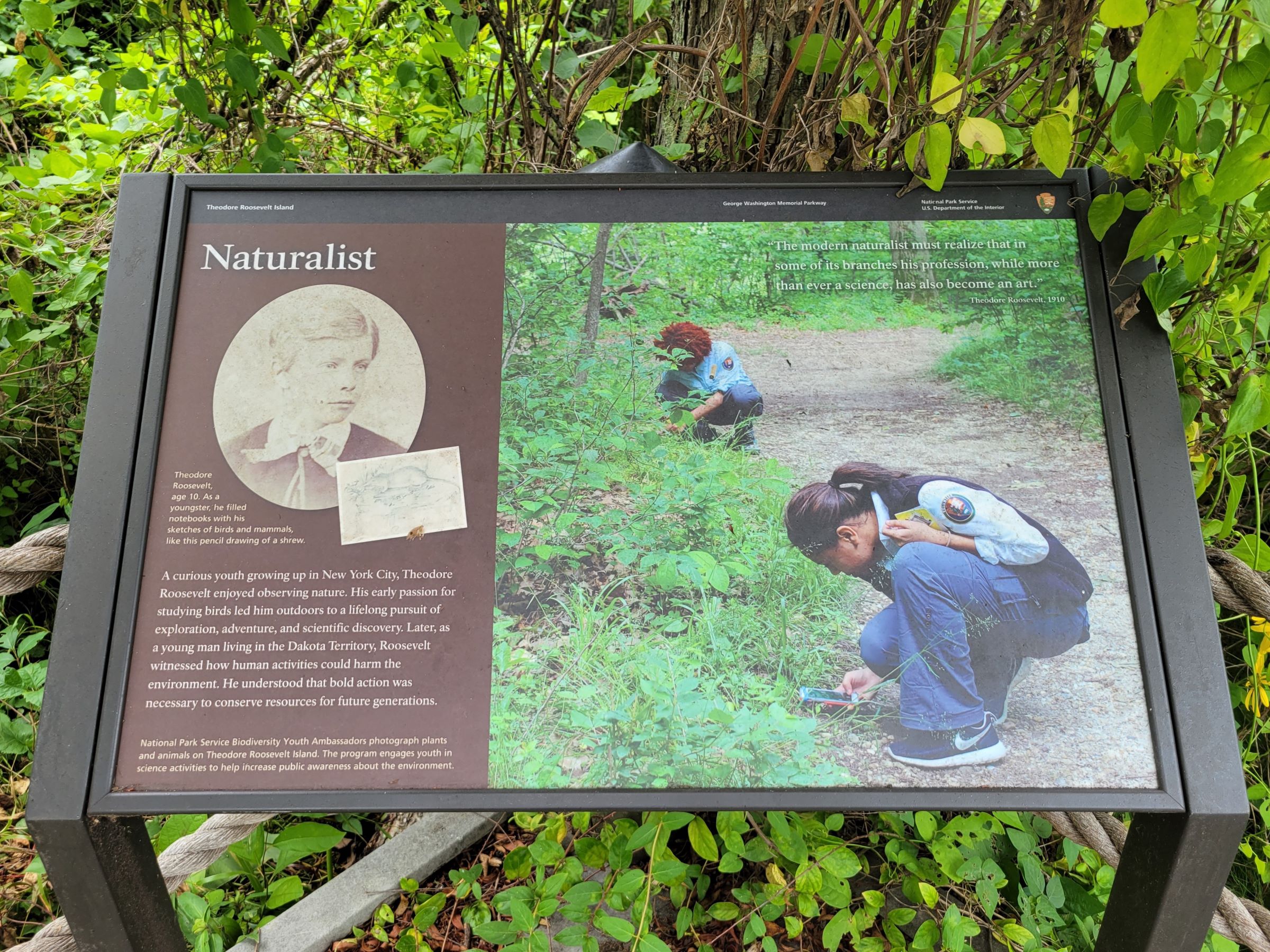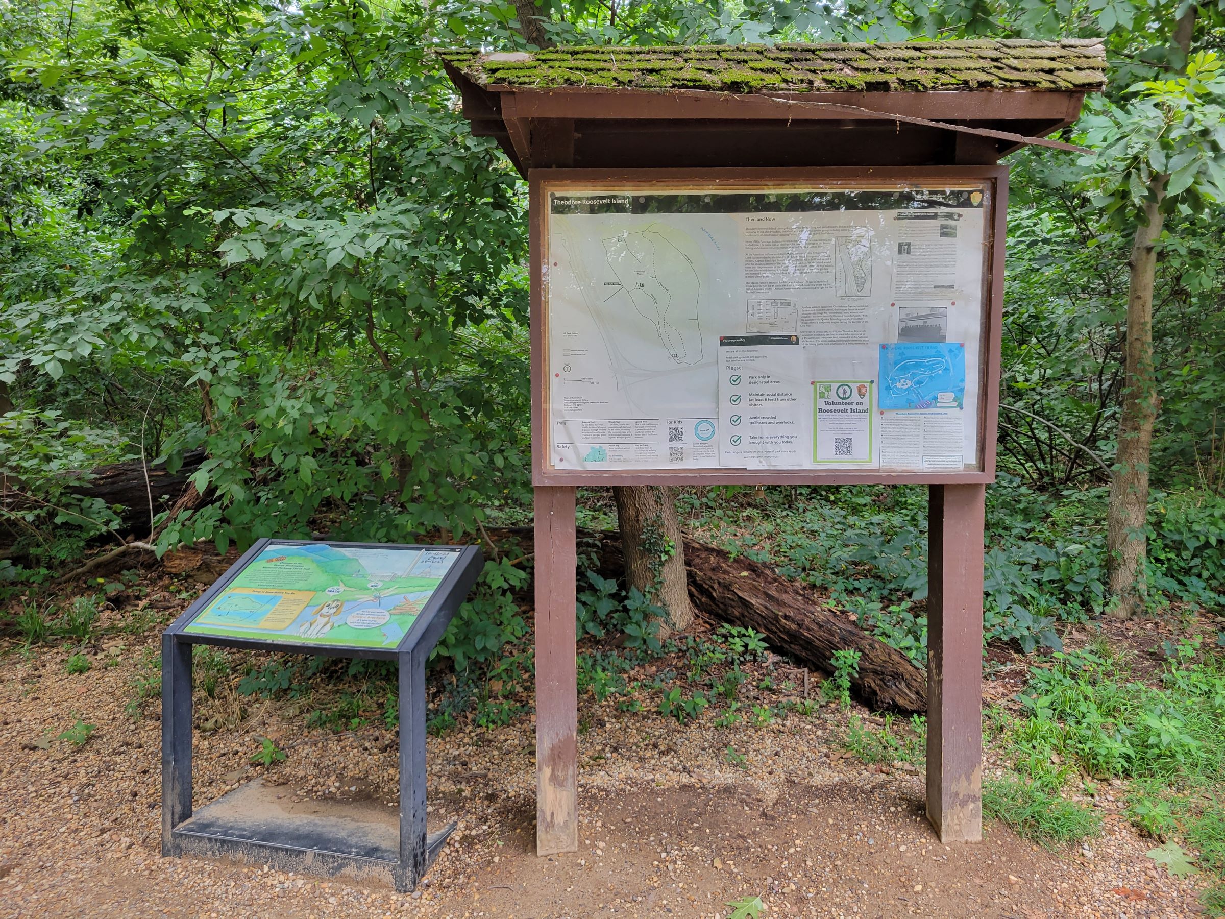 이런게 자연주의자의 길이지...! 먼저 섬의 북쪽 끝까지 올라가봤지만, 강가로 내려가는 트레일은 막아 놓아서, 뒤돌아 다시 Upland Trail을 따라 남쪽으로 내려갔는데, 섬 전체가 대통령 기념물이다 보니 트레일 중간에도 안내판들이 가끔 등장한다.
