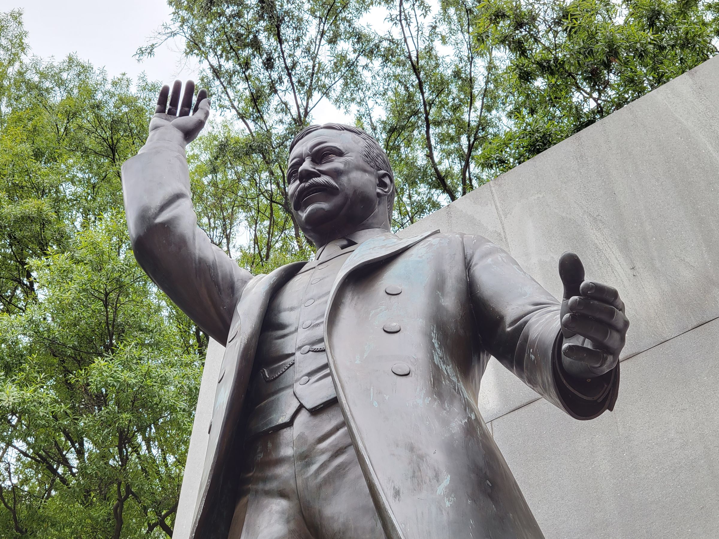 가까이서 바라보니까 KFC 할아버지를 좀 닮은 것 같기도 하고...ㅎㅎ 동상의 포즈가 누구 귀싸대기를 한 대 때릴 분위기처럼 보이지만, 연설을 할 때 항상 격정적으로 손을 휘저으며 했던 모습에서 따왔다고 한다.