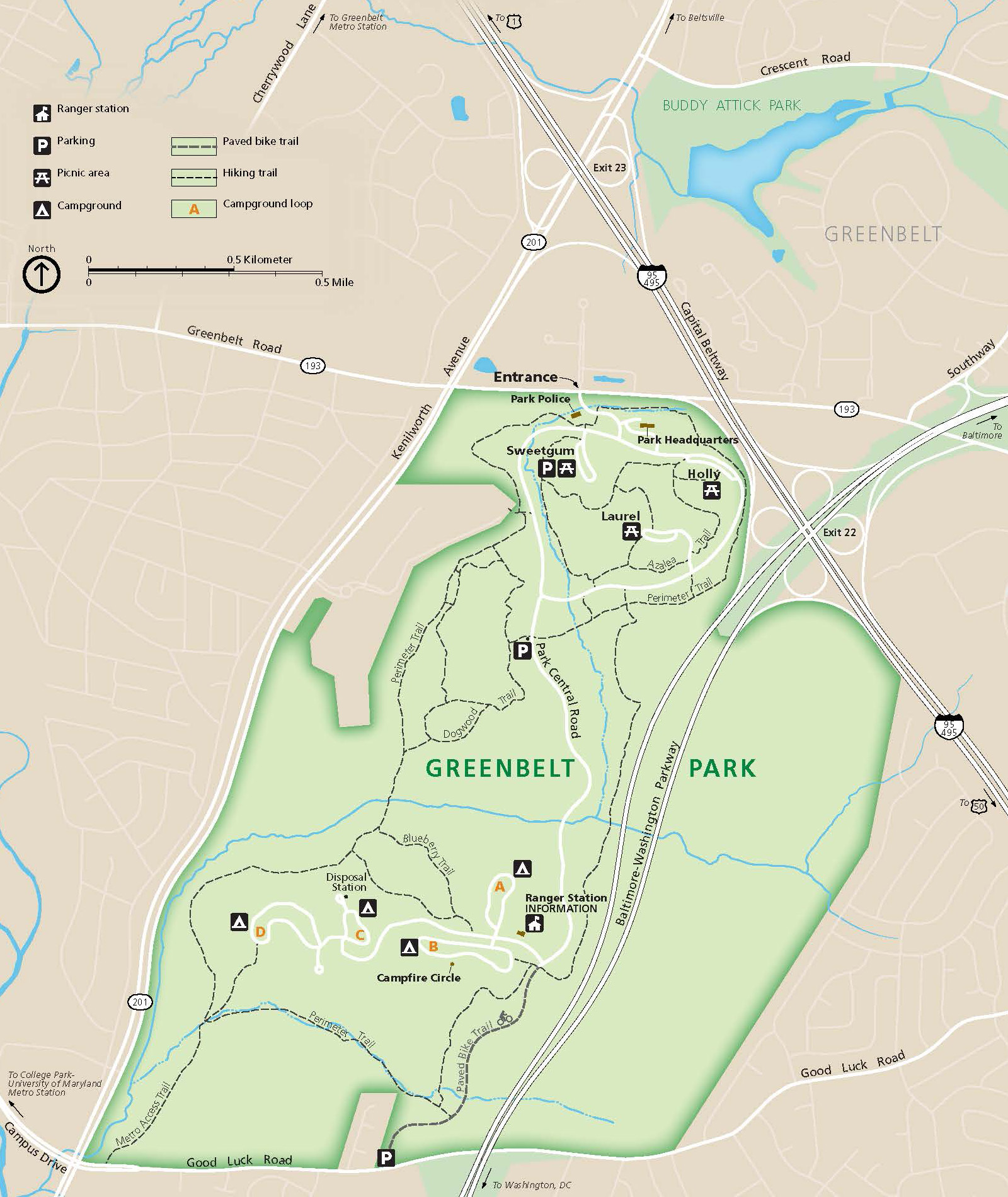 레인저스테이션을 지나면 바로 'DC에서 가장 가까운 캠핑장'의 입구가 나온다. 여기 그린벨트파크는 홈페이지 대표사진도 항상 텐트이고, 첫문장도 "Camp ten miles from the Washington Monument!"라고 써놓을 만큼 워싱턴 가까이 캠핑을 할 수 있다는 것을 엄청 강조한다. 하지만, 백악관 바로 앞에도 텐트가 하나 있고, 1마일도 떨어지지 않은 곳에도 많은 텐트들이 있으므로, 각각을 클릭해서 사진으로 직접 보실 수 있다.^^