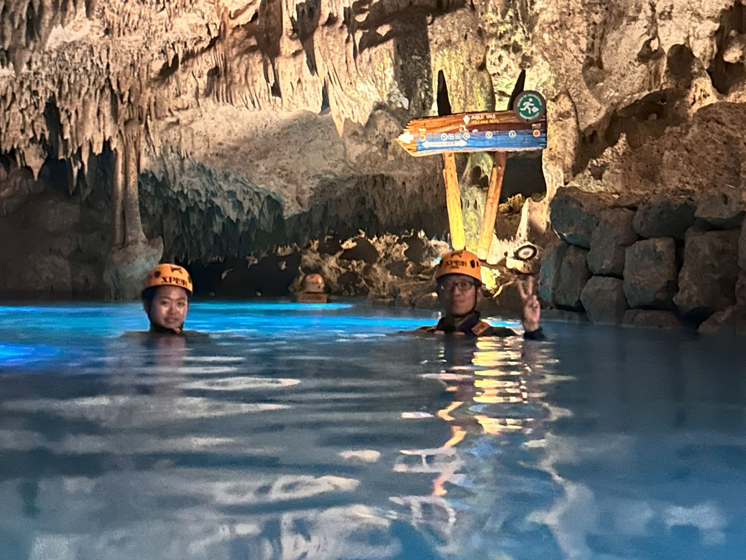 이 곳의 하이라이트인 동굴 수영을 하는 지하의 강(Underground Rivers)에 부녀가 먼저 입수를 했다. 여기도 짧은 코스와 긴 코스가 있는데, 모험을 좋아하는 우리 가족은 당연히 긴 코스로~