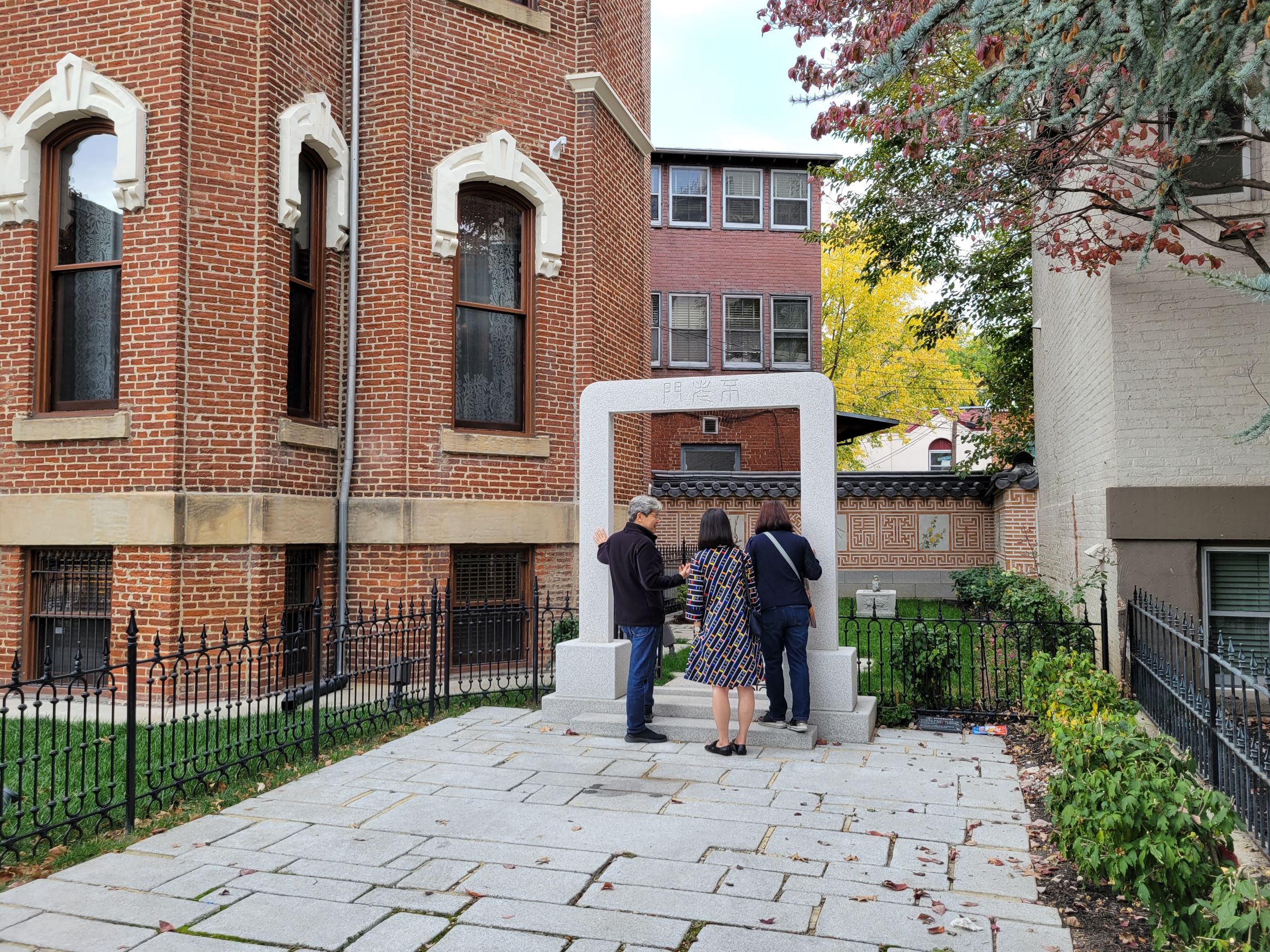 옥상에서 태극기가 펄럭이고 있는 모퉁이의 집이 바로 주미 대한제국 공사관(Old Korean Legation Museum)으로, 아래쪽 게양대에는 한미수교 70주년 기념 배너와 표지판도 볼 수 있었다.