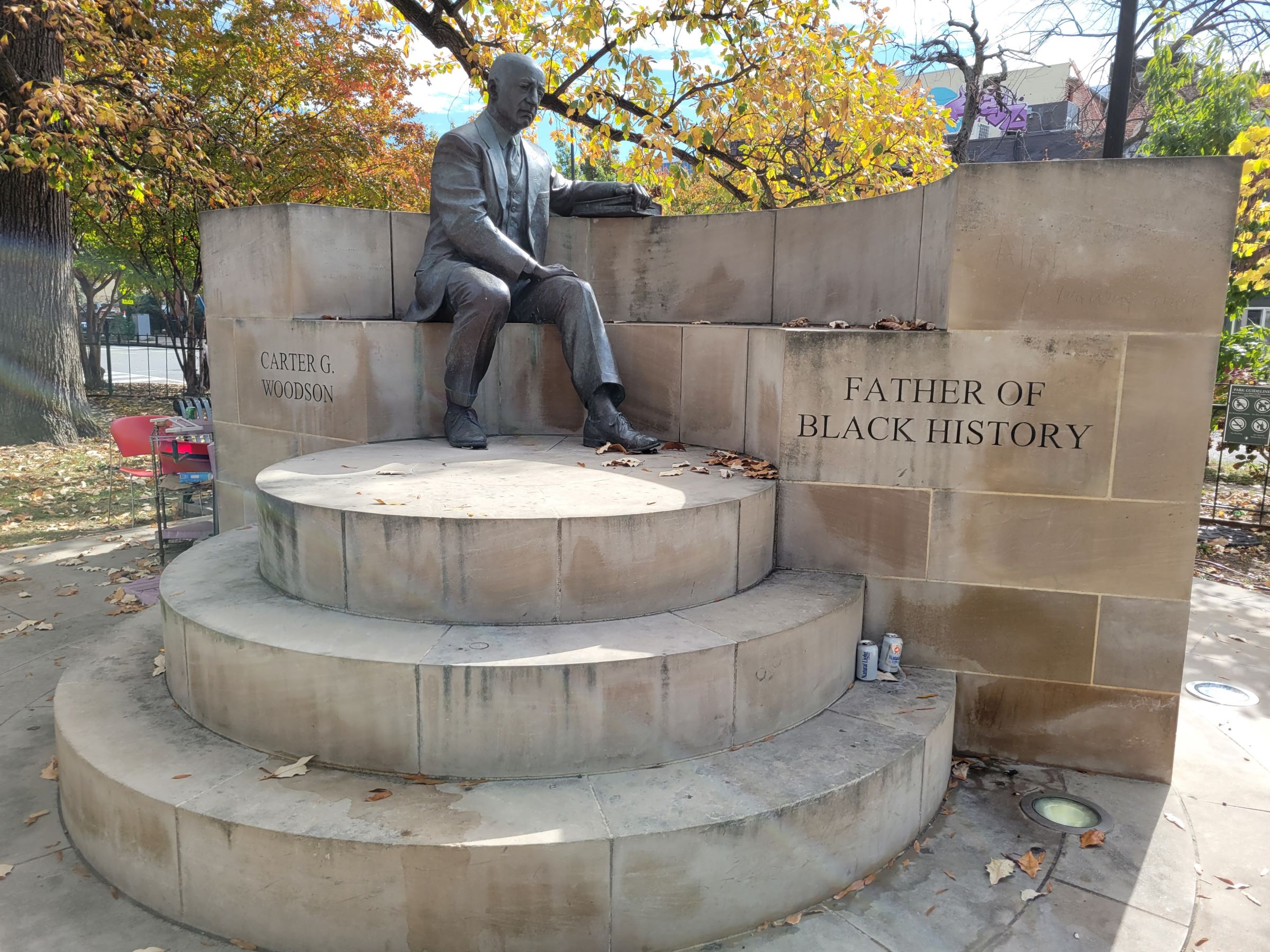 차를 주차한 곳은 로드아일랜드 애비뉴(Rhode Island Ave)에 접해있는 조그만 카터 G. 우드슨(Carter G. Woodson) 기념공원 부근이었다. 그는 노예였던 부부에게서 1875년에 태어나 농장과 탄광 일을 한다고 20세가 넘어 고등학교에 들어갔지만, 그후 꾸준히 문학과 역사를 공부해서 1912년에 하버드 대학교에서 박사학위를 받았다. 그런데 기념물 계단에 놓인 맥주캔에다가 동상 뒤쪽으로는 노숙자 한 분이 살림을 차리고 계셔서, 사진 한 장만 찍고는 바로 아래에 있다는 국립 공원으로 지정된 그의 집을 찾아갔지만...
