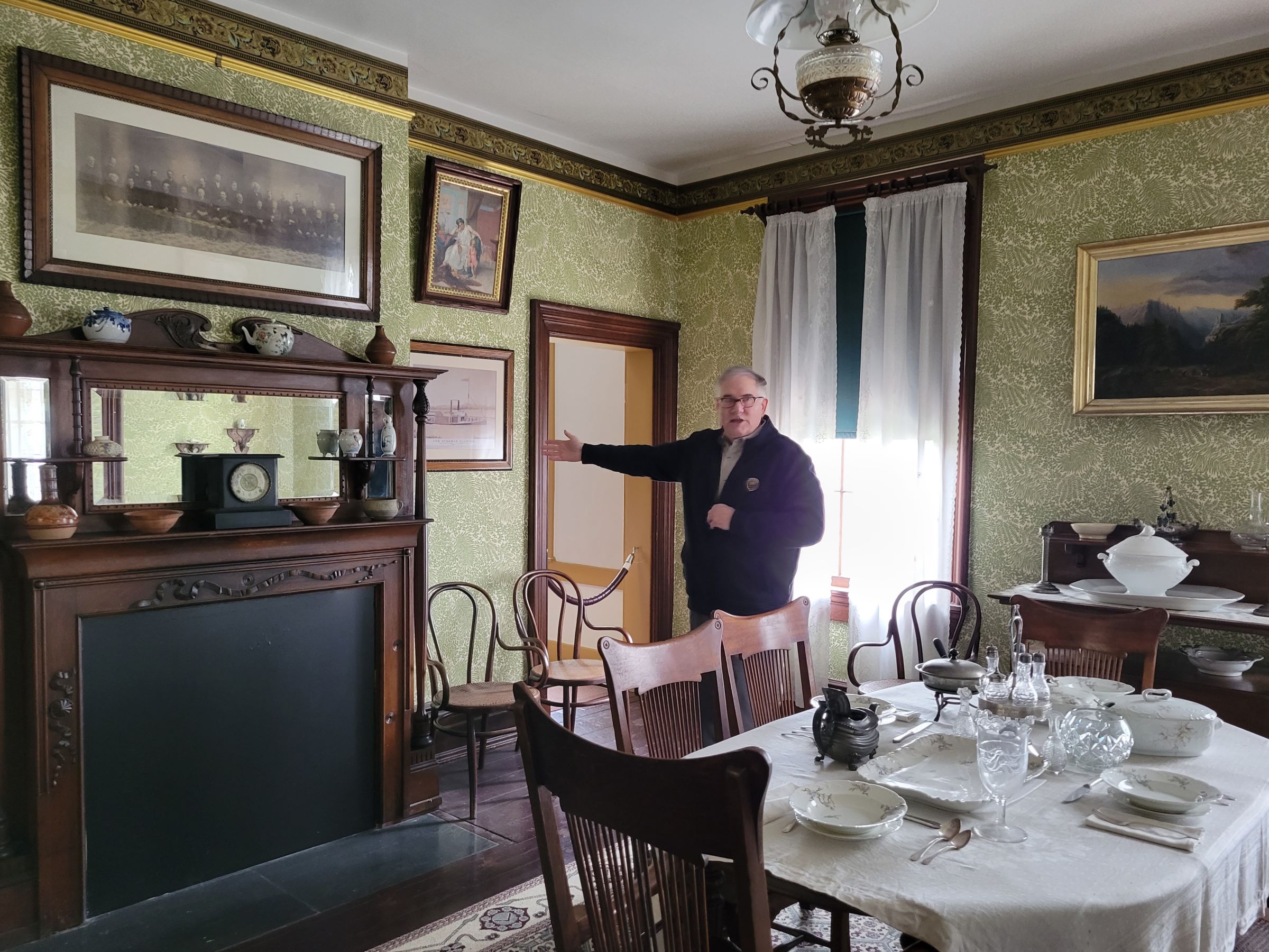 식당(dinning)에 걸린 그림과 사진들을 하나하나 설명해주고 계신 자원봉사자 가이드님으로, 항상 저렇게 유일한 손님을 쳐다보며 설명을 해주셔서 사진 몇 장 찍는 것도 아주 힘들었다는...^^ 계속해서 부엌에 있는 오븐과 싱크대까지 모두 사연을 들은 후에야 2층으로 올라갈 수 있었다.