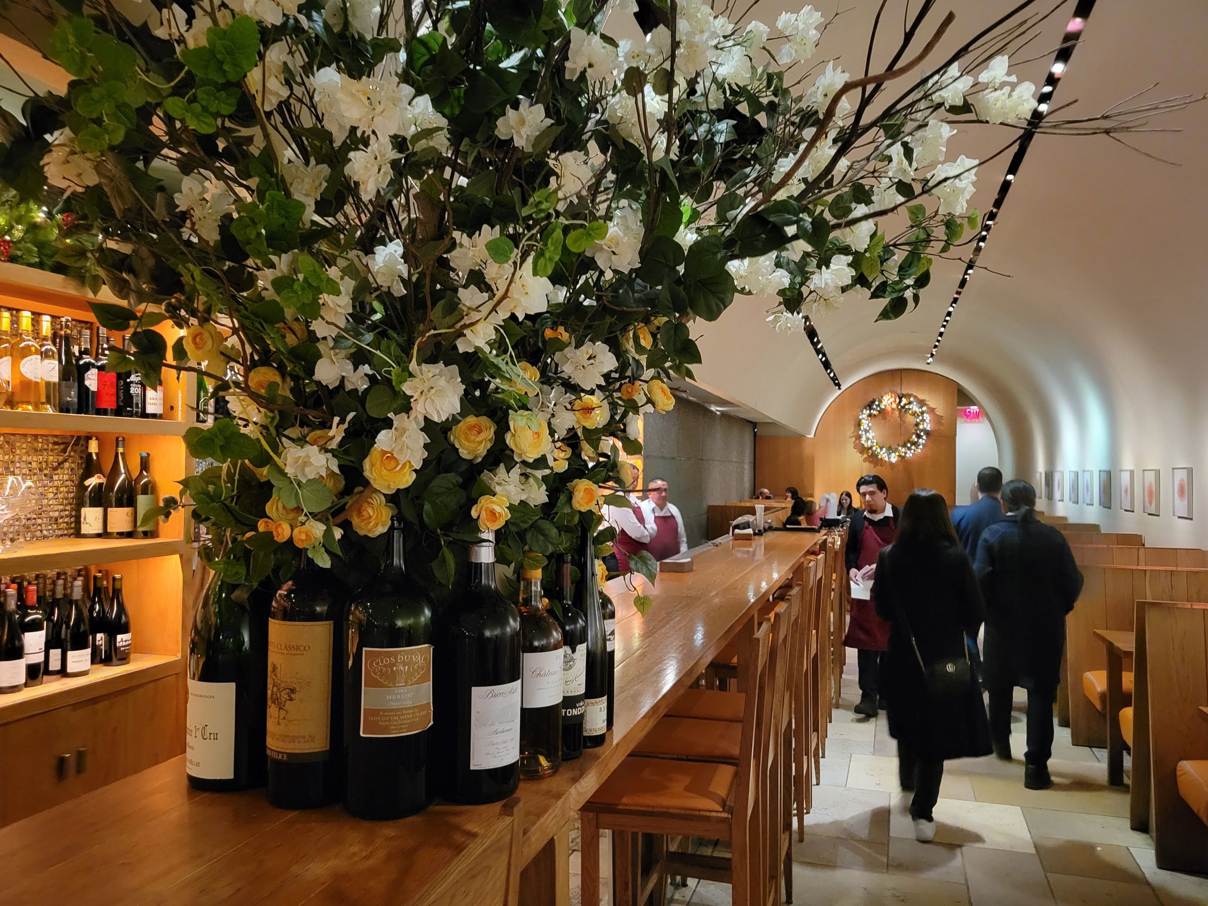 오후 5시의 문 여는 시간에 맞춰서 도착한 Bar Boulud 식당의 안쪽으로 걸어 들어가고 있다.