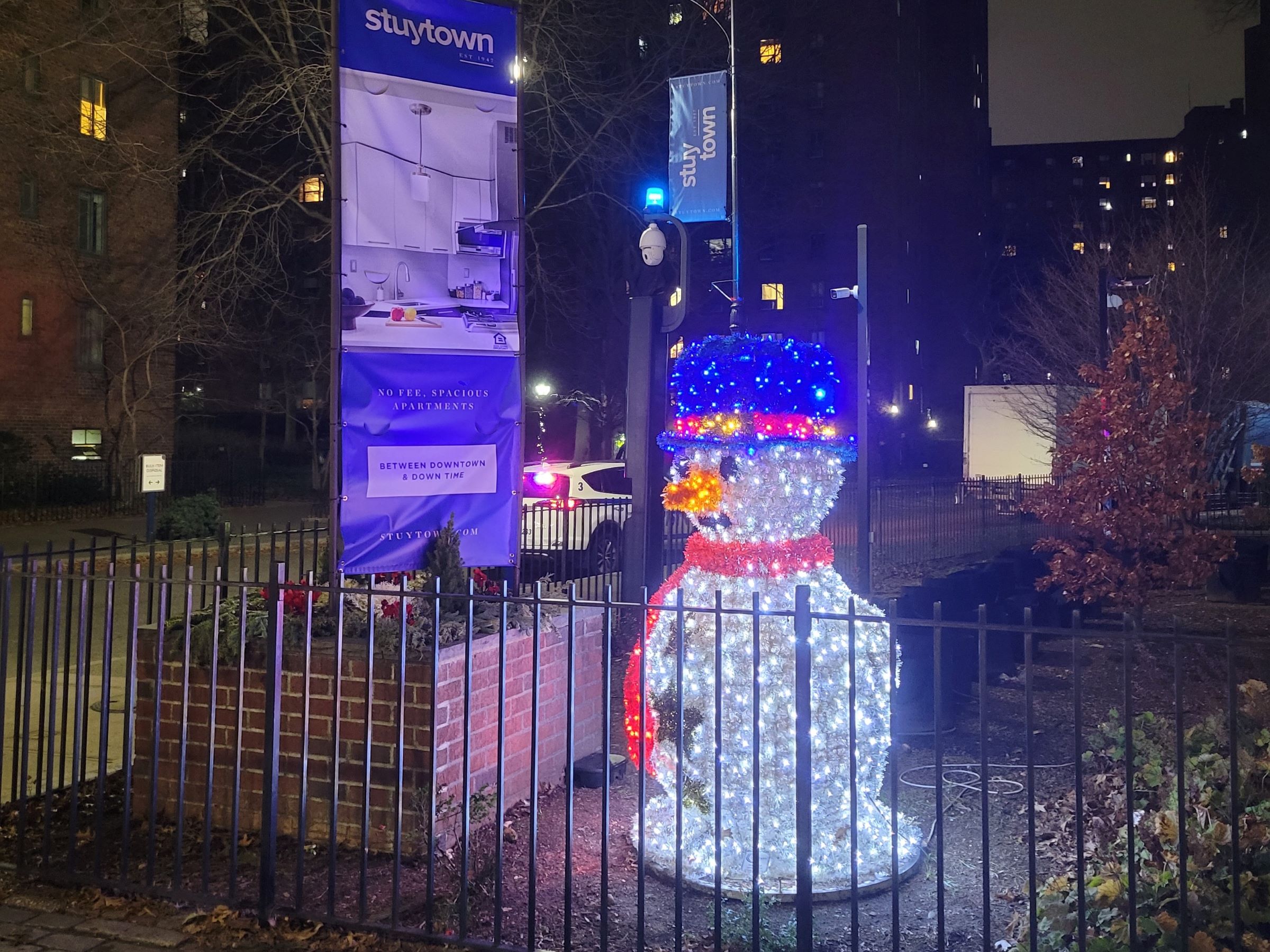 그렇게 맛있는 저녁 식사와 재밌는 연주회 관람으로 '숙박비가 따로 들지 않는' 2박3일 크리스마스 뉴욕여행의 첫날 일정을 모두 마치고, 지하철로 딸의 아파트로 돌아오니 반짝반짝 눈사람이 입구를 지키고 있었다. 한국 서울은 눈이 많이 내려서 화이트 크리스마스였다고 하지만, 뉴욕은 다행히 많이 춥지도 않아서 밤늦게 돌아다니기에도 좋았었다~
