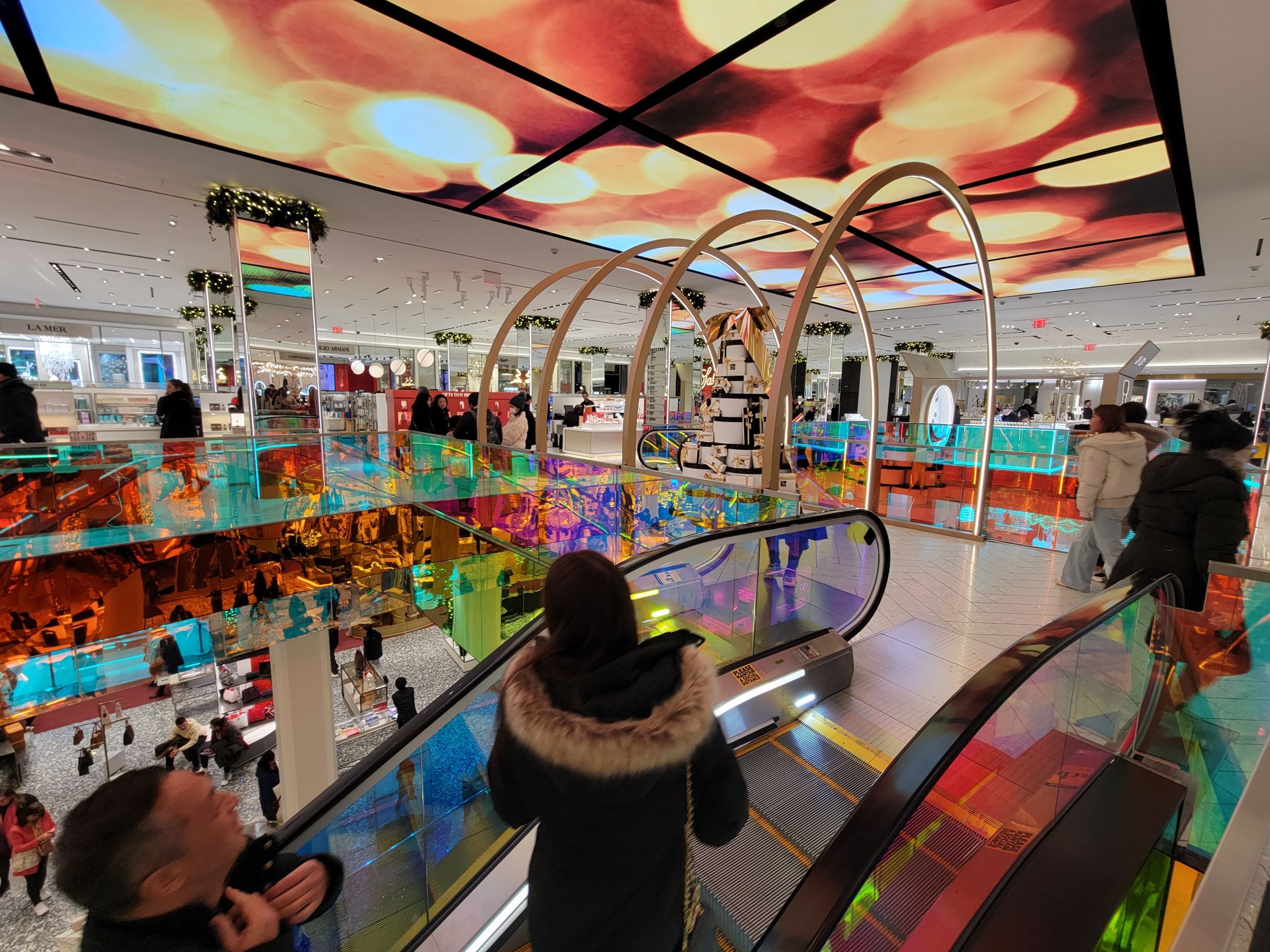 크리스챤디올(Christian Dior) 협찬으로 제작된 벽면의 원형 라이트쇼의 제목은 Dior’s Carousel of Dreams라고 하는데, 그냥 커다란 전광판의 영상이 아니라 꽃잎과 여러 문양들, 그리고 가운데 12궁도 등의 형상으로 이루어진 아날로그적인 감성이 아주 마음에 들었다.
