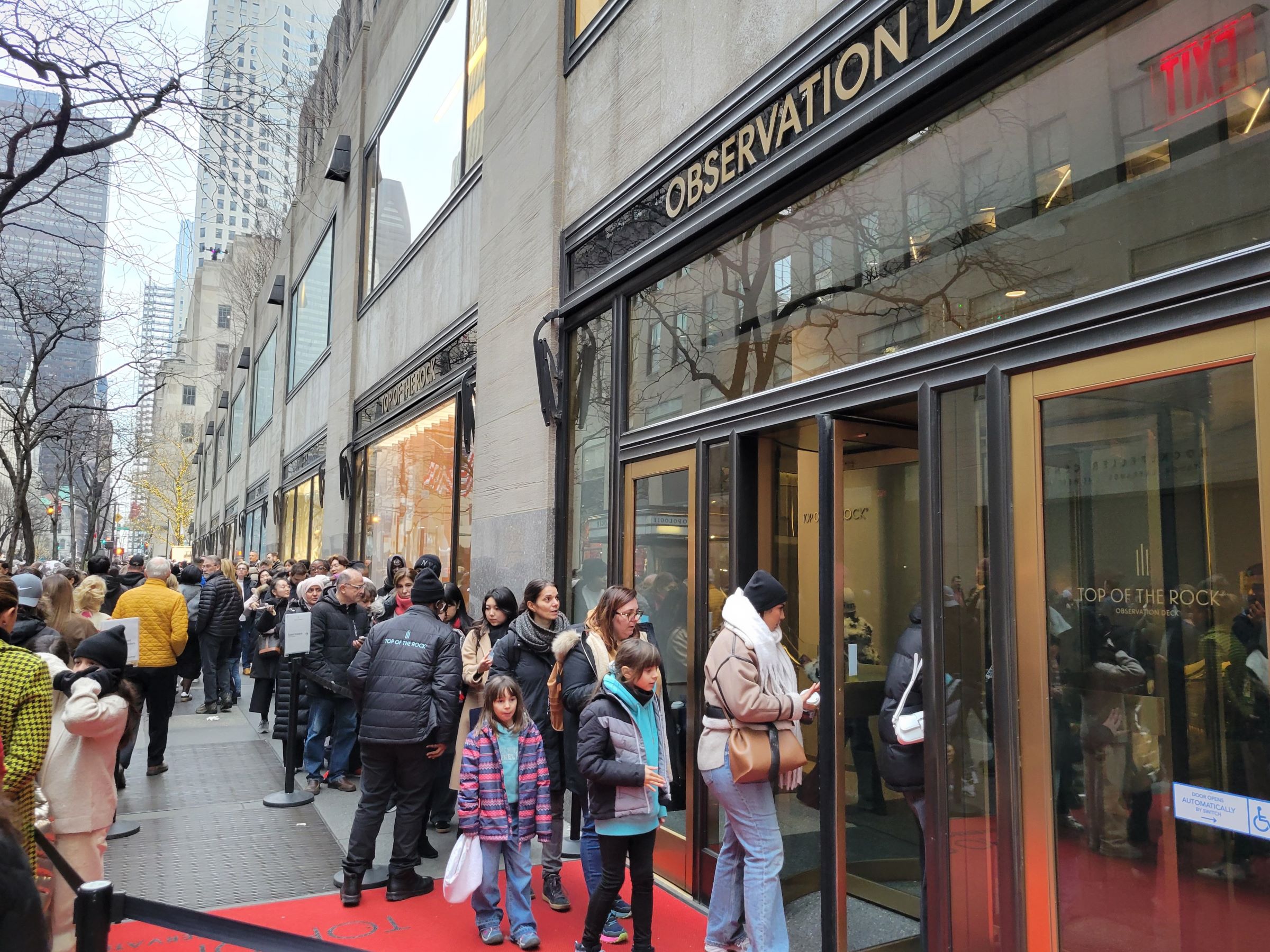 창밖 정면으로 보이는 록펠러센터 트리와, 우리가 걸어왔던 통로에 빼곡한 사람들을 구경했다.^^ 함께 카페에서 커피와 작은 케이크로 에너지를 보충한 후에 좀 더 아이쇼핑을 하려는데, 크리스마스 이브라서 일찍 5시에 영업을 종료한다고 모두 나가라는 방송이 나왔다.