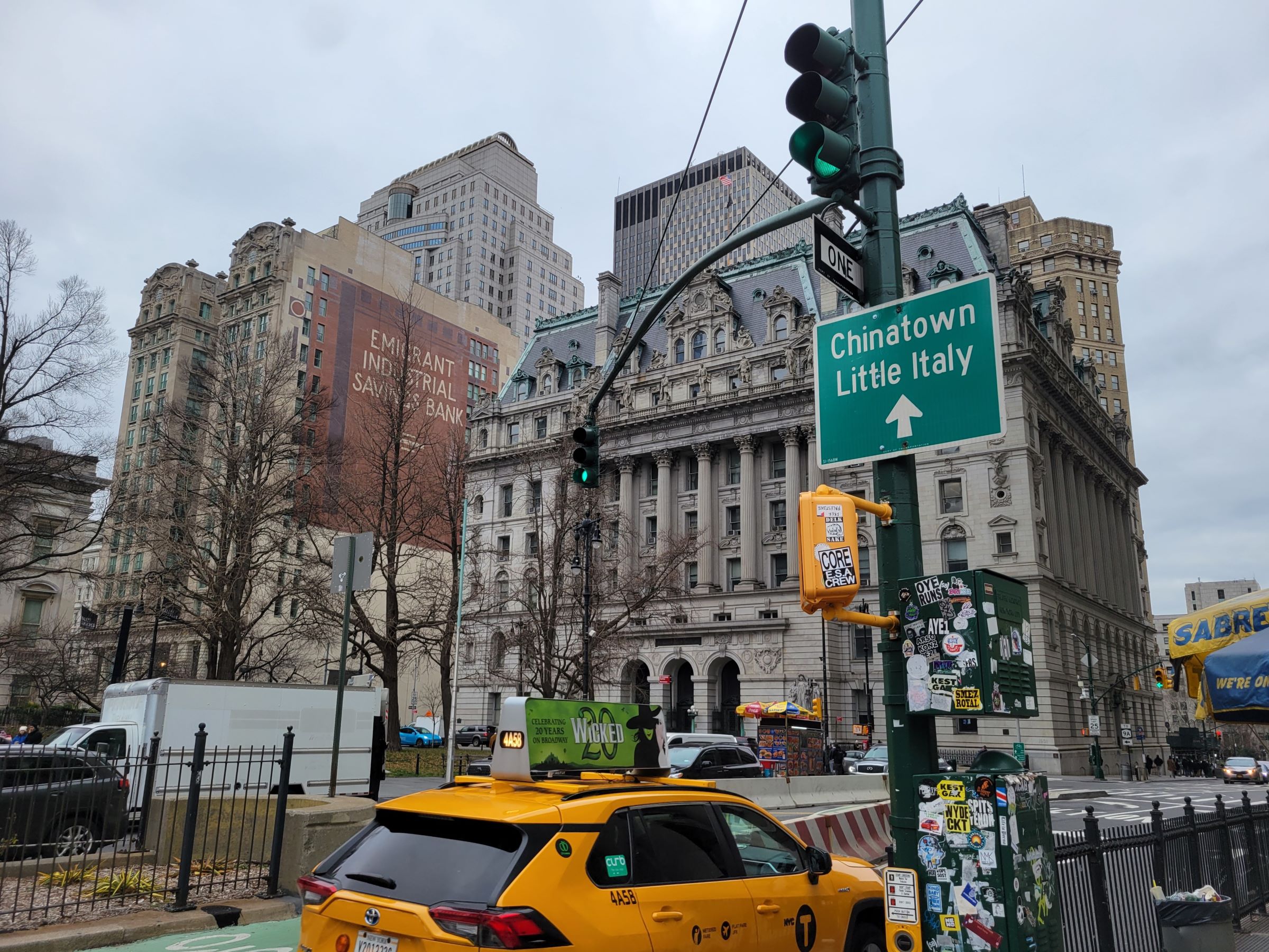 지하철 녹색 라인 Brooklyn Bridge-City Hall 역에서 내려 밖으로 나오니, Chinatown/Little Italy 방향을 알려주는 간판이 딱 보인다. 그 쪽은 나중에 갈 곳이라서 반대 방향으로 고개를 돌려보면,