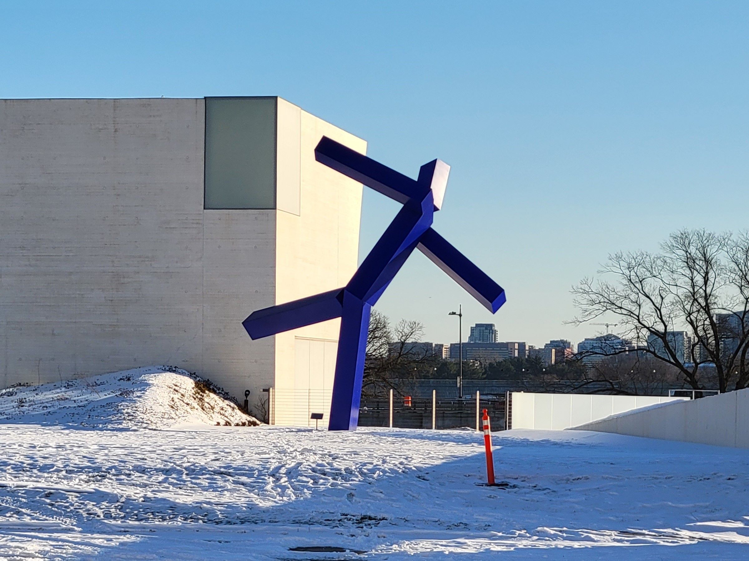 중간 쉬는 시간에 잠깐 밖으로 나와서 하얀 눈밭 위에 계속 힘든 자세로 서있는, 미국 조각가 조엘 사피로(Joel Shapiro)의 24피트(7.3 m) 높이의 파란 "Blue"를 잠깐 구경했다. (케네디 대통령 기념관이기도 한 John F. Kennedy Center for the Performing Arts에 대한 자세한 설명은 여기를 클릭해서 첫번째 방문했던 포스팅을 보시면 됨)