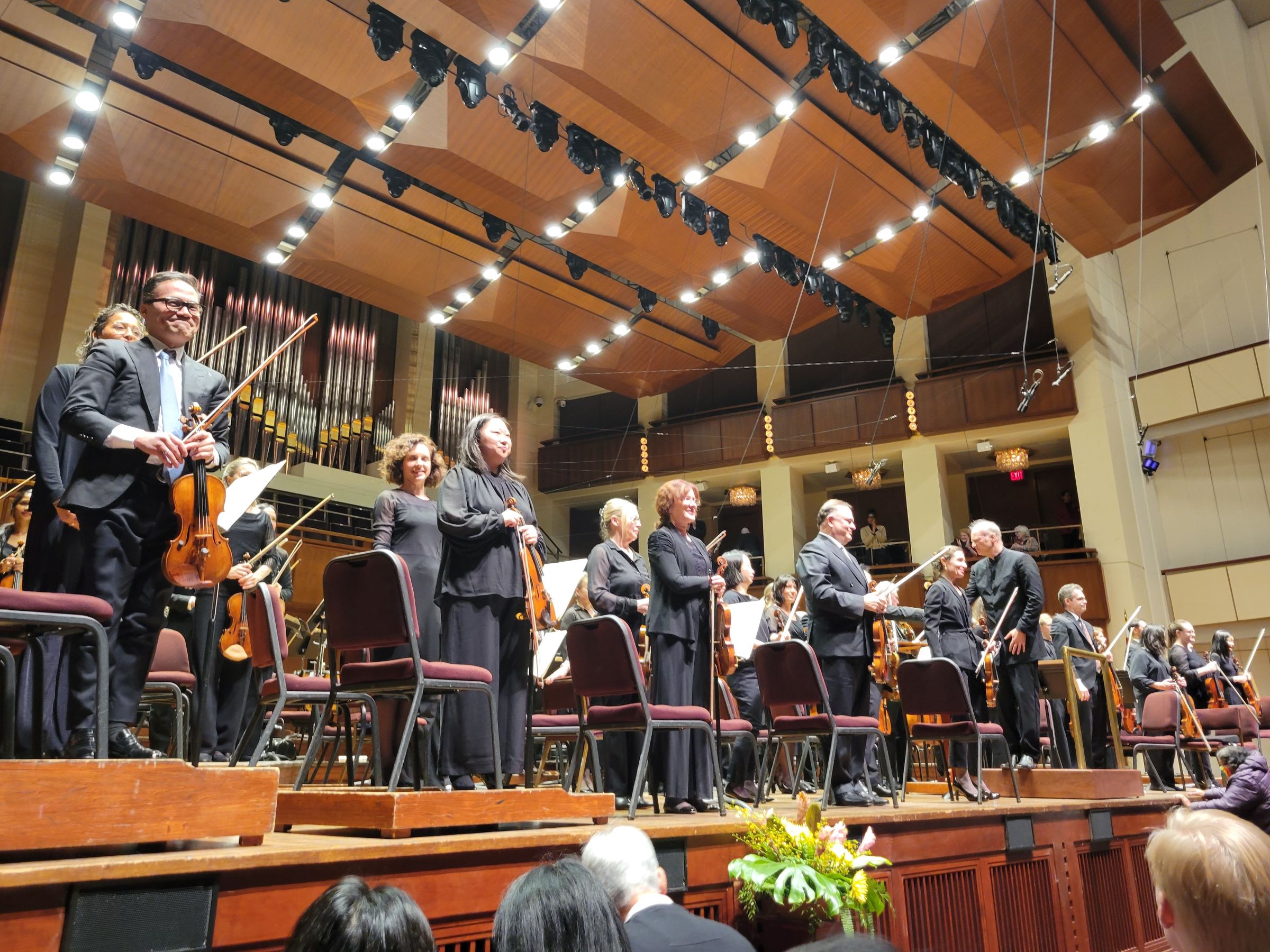 2부로 슈베르트 9번 교향곡(Schubert’s Ninth Symphony) “The Great” 전악장 연주를 모두 마치고 단원들이 인사하는 모습이다.