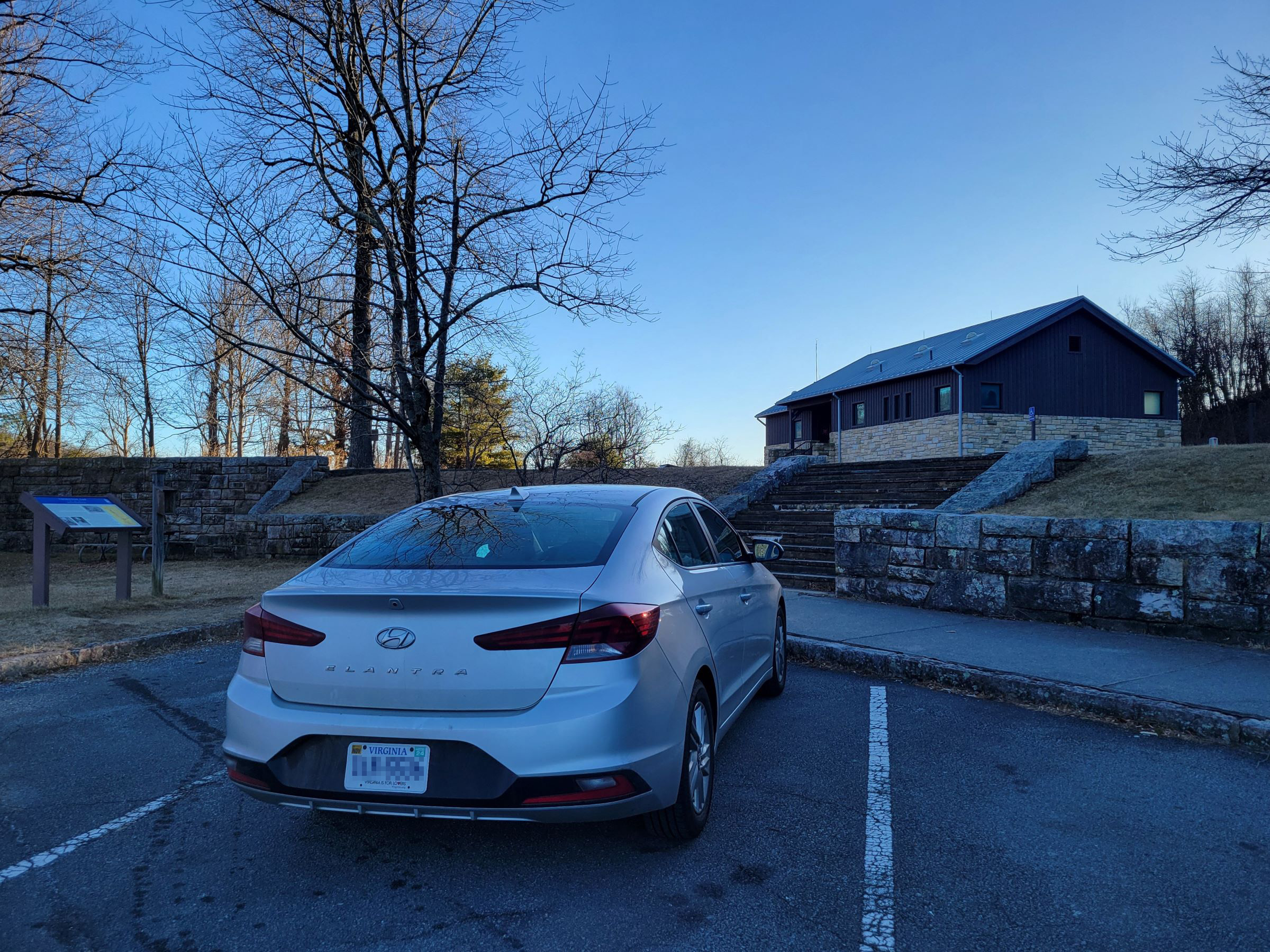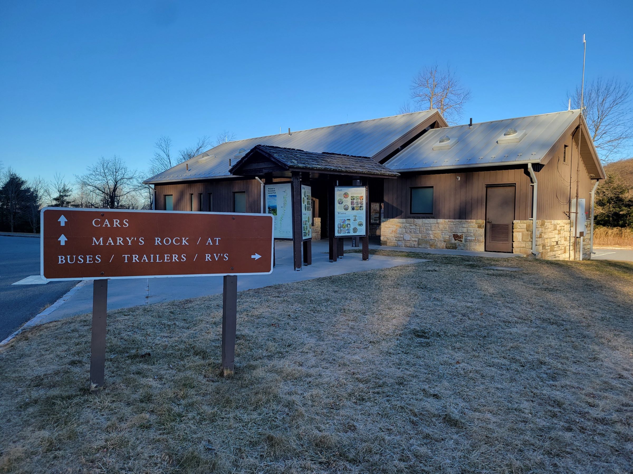 난방까지 빵빵하게 나오는 깨끗한 화장실에 들렀다가 차에서 배낭과 스틱을 챙긴 후에, 표지판에 MARY'S ROCK / AT로 표시된 트레일헤드를 찾아갔는데, 그 앞에 다른 승용차 한 대가 유일하게 세워져 있었다.
