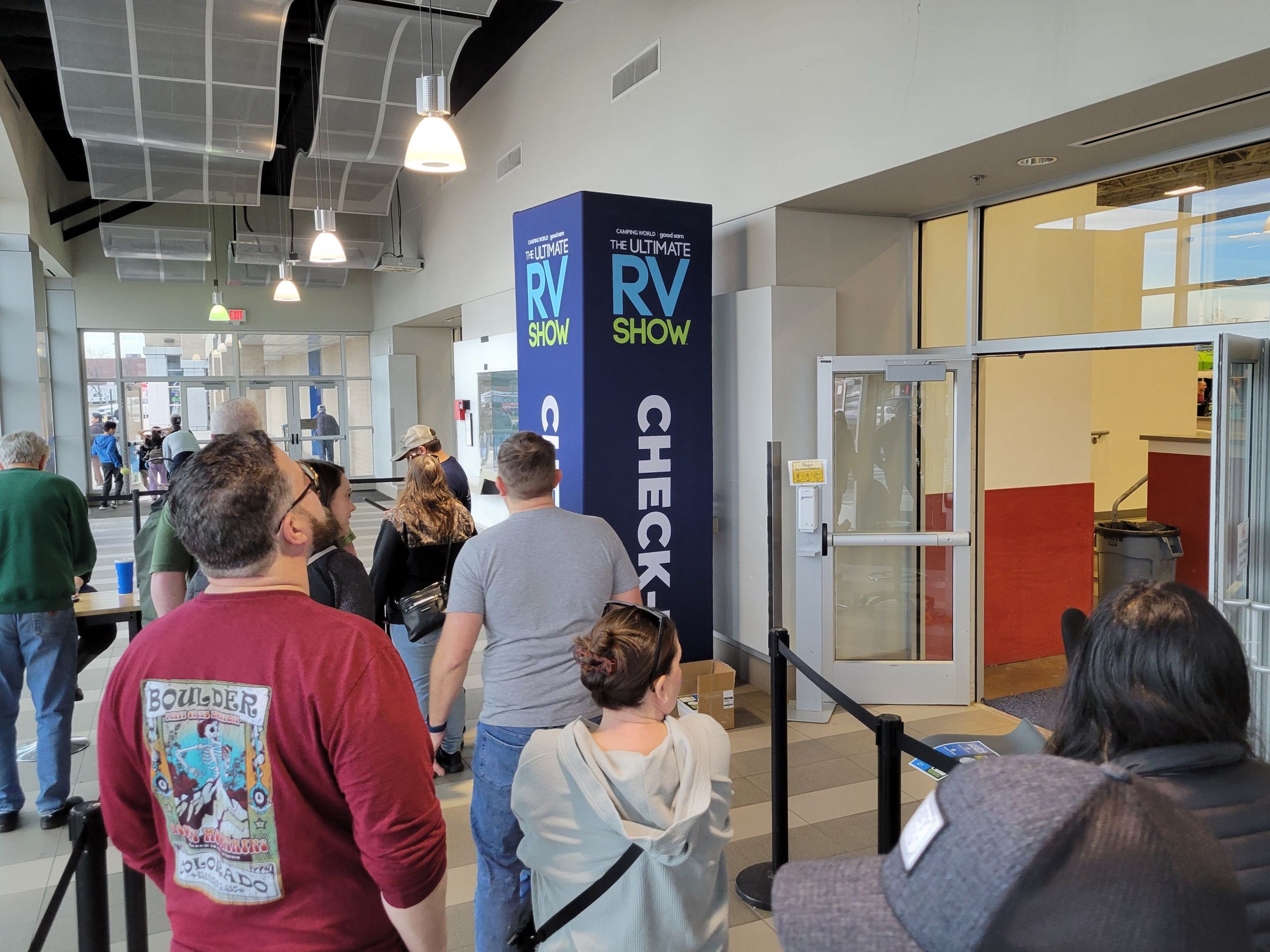 그래도 미리 표를 예약하고 QR코드까지 받아서 준비했지만, 체크인 줄이 길어지니까 직원이 그냥 들어가도 된다고 해서 바로 우르르~ "앞사람 티셔츠가 콜로라도 관광도시인 볼더(Boulder) 기념품이네! 캠핑카를 몰고 대륙횡단하며 록키 산맥을 넘는 날이 과연 올까?"