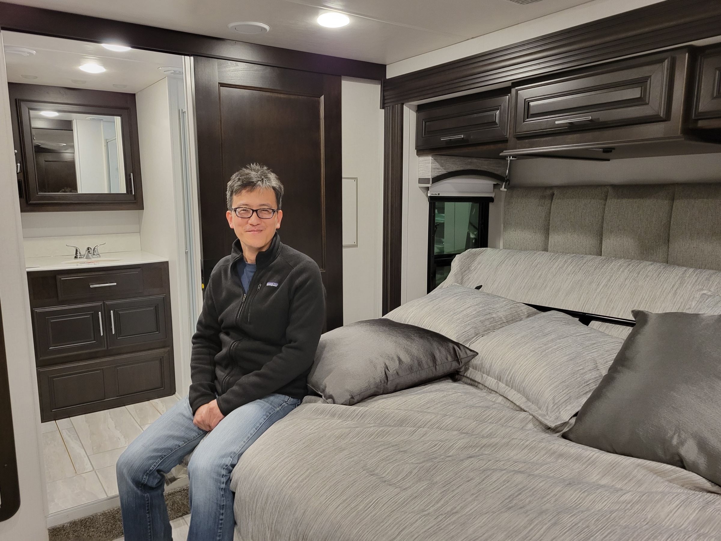 별도의 전용 화장실과 킹사이즈 침대가 고정으로 설치된 마스터룸이 나온다! 이 정도면 그냥 바퀴달린 움직이는 집이라고 할만한 수준이라서, 미국에서는 캠핑카를 '모터홈(motorhome)'이라고도 많이 부른다. 이렇게 큰 버스형 RV는 운전도 힘들 것 같아 줘도 안 탈 것 같고,