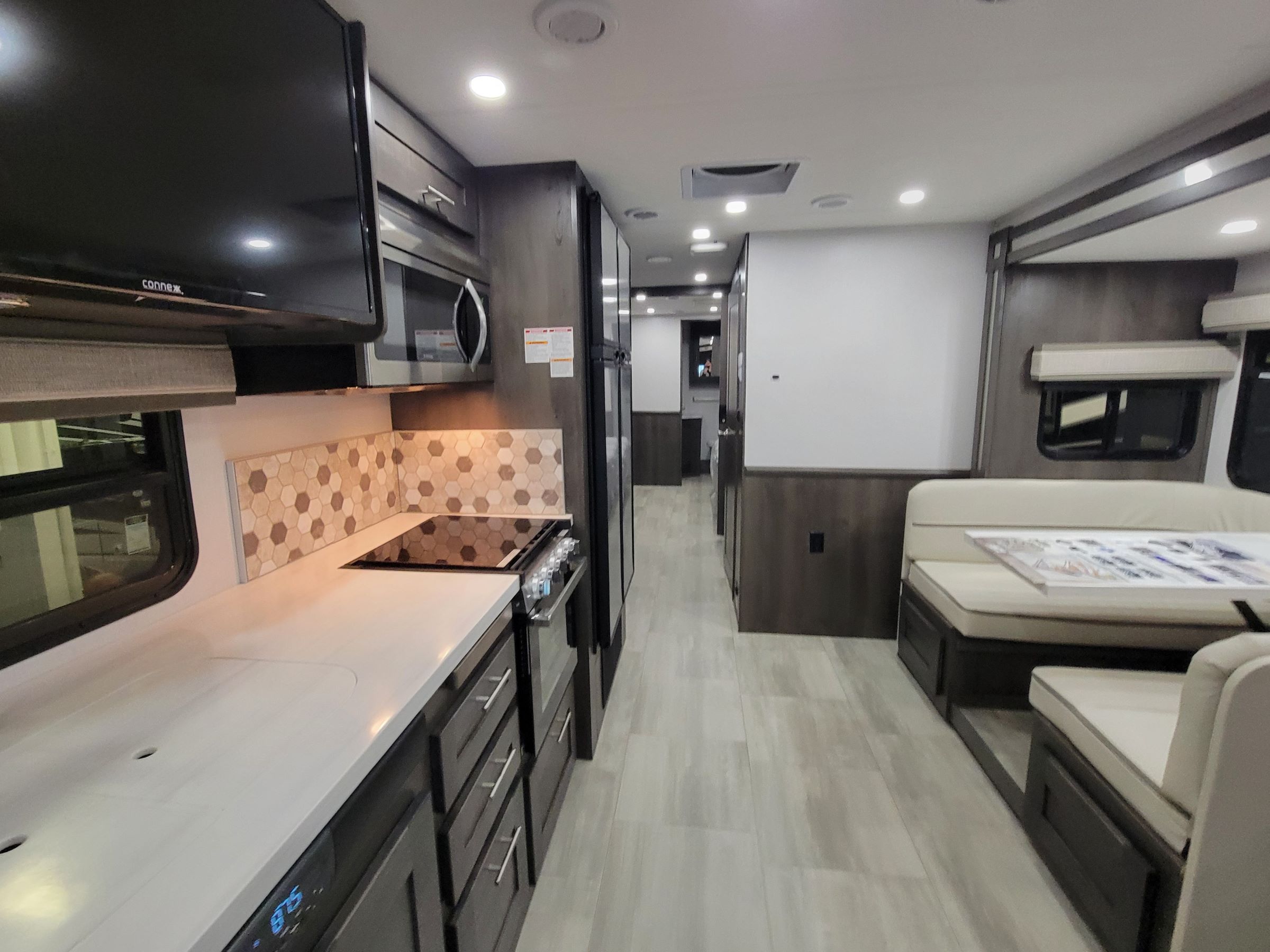 캠핑카는 흔히 3개의 클래스로 분류되는데, 이렇게 대형 버스를 개조한 가장 크고 비싼게 Class A로 신차 가격은 대략 20만~30만불 정도가 된다. 이 급은 대부분이 차체가 돌출되는 트랜스포머 스타일로 제작이 되어서, 주차 후에 확장하면 넓은 실내 공간을 이용할 수 있다.