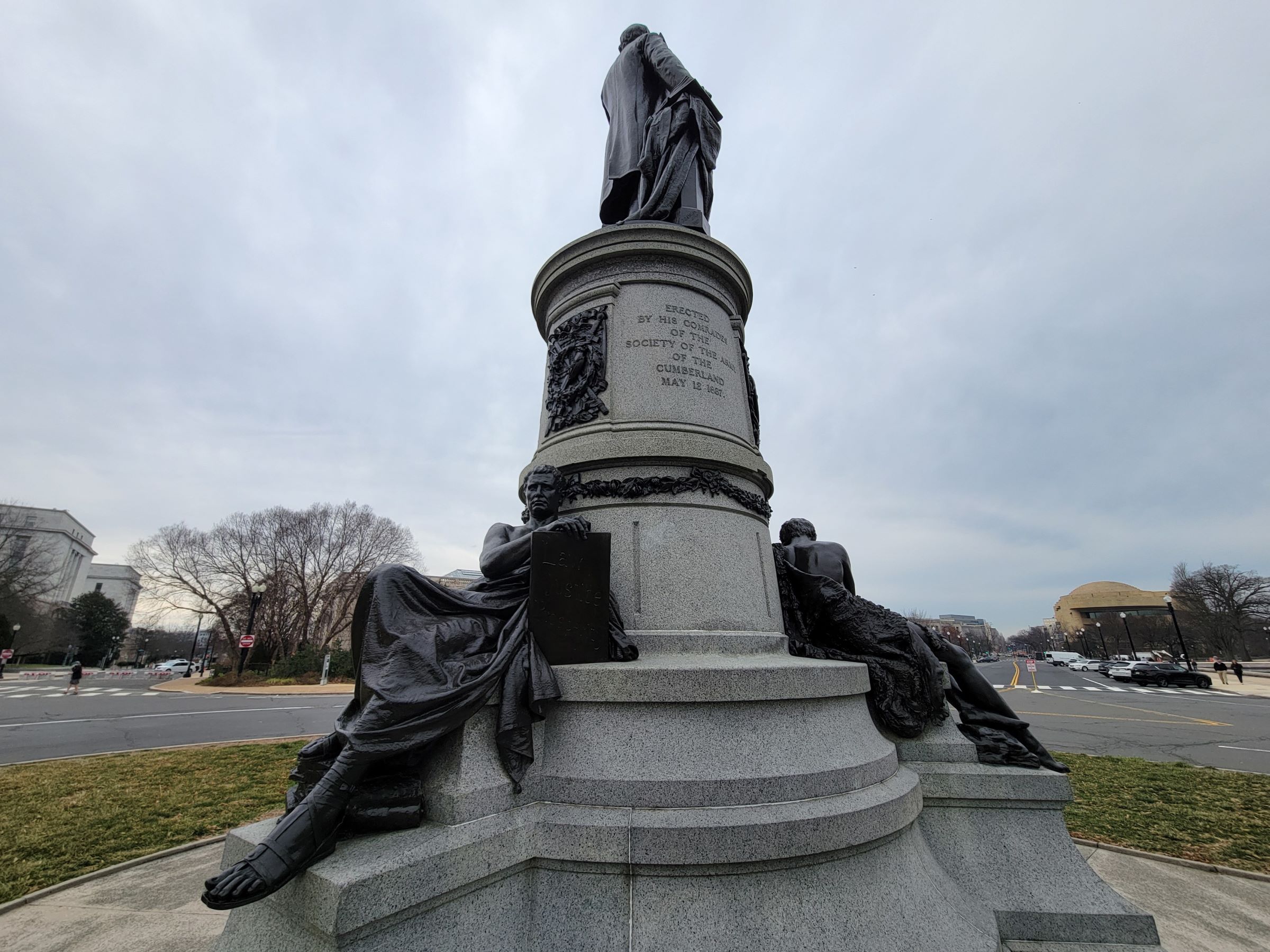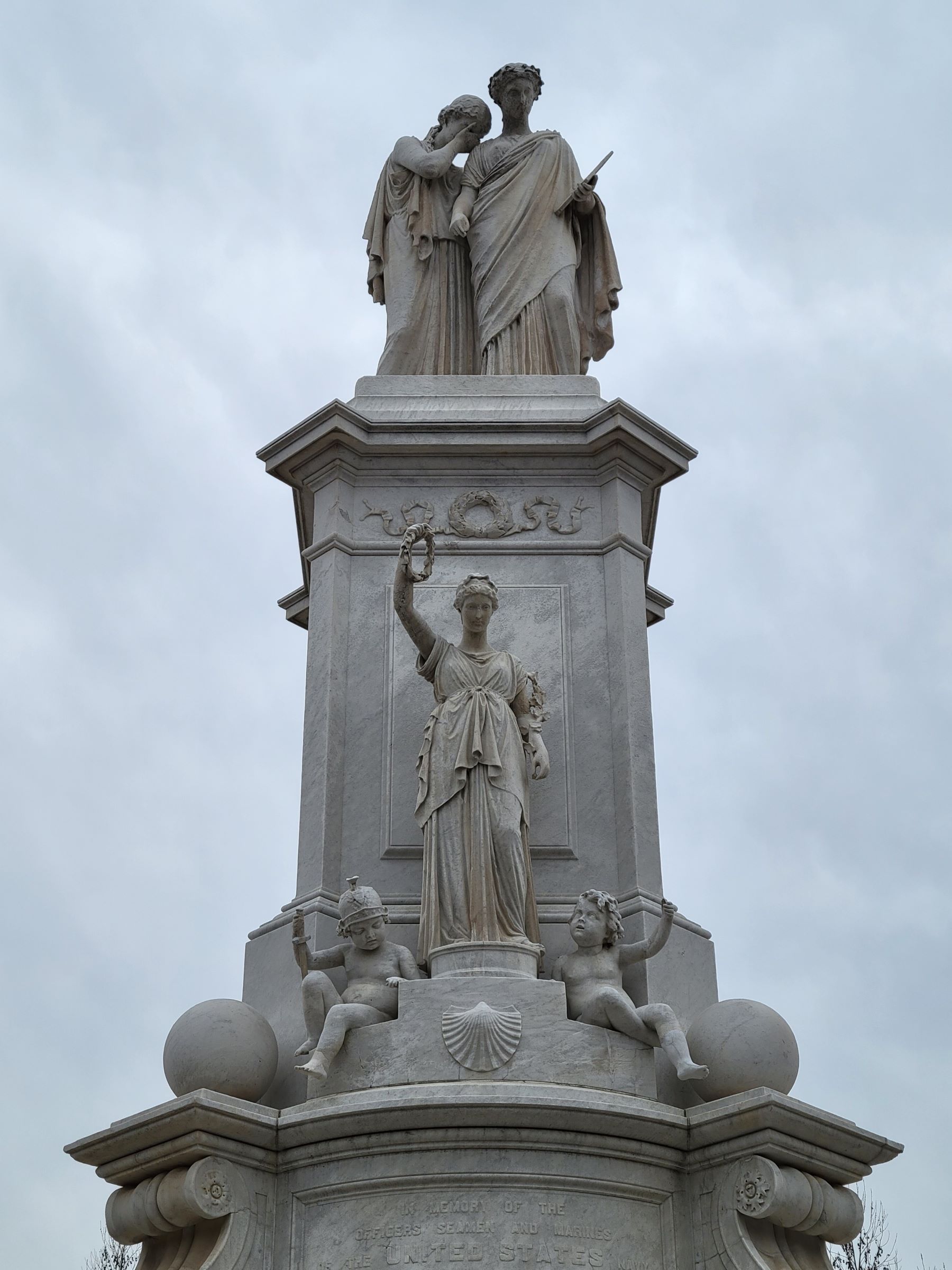 정면 꼭대기에 얼굴을 가리고 우는 '비통(Grief)'이 석판을 들고 있는 '역사(History)'의 어깨에 기대어 있고, 그 아래에는 '승리(Victory)'가 월계관을 들고 있다. 그리고 아래쪽의 아기는 좌우가 각각 전쟁의 신 마스(Mars)와 바다의 신 넵튠(Neptune)을 묘사한 것으로, 남북전쟁에서 숨진 해군과 선원들을 추모하는 의미로 1878년에 여기 만들어졌다. 이제 방향을 바꿔 펜실베이니아 애비뉴를 따라 걸어가 보자~